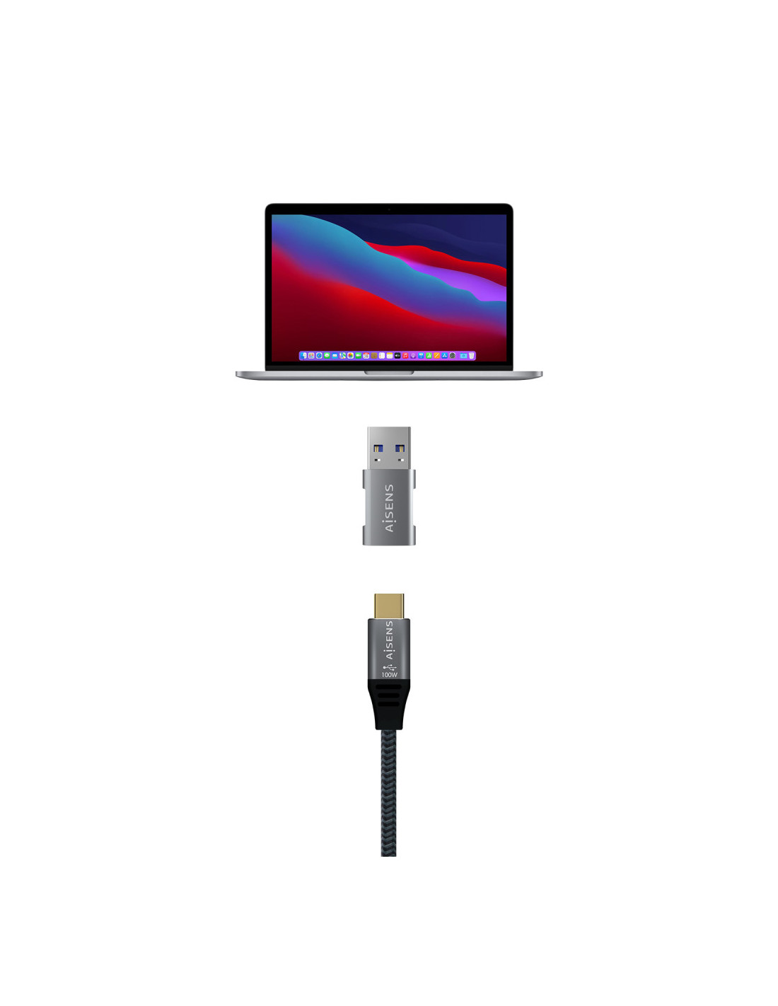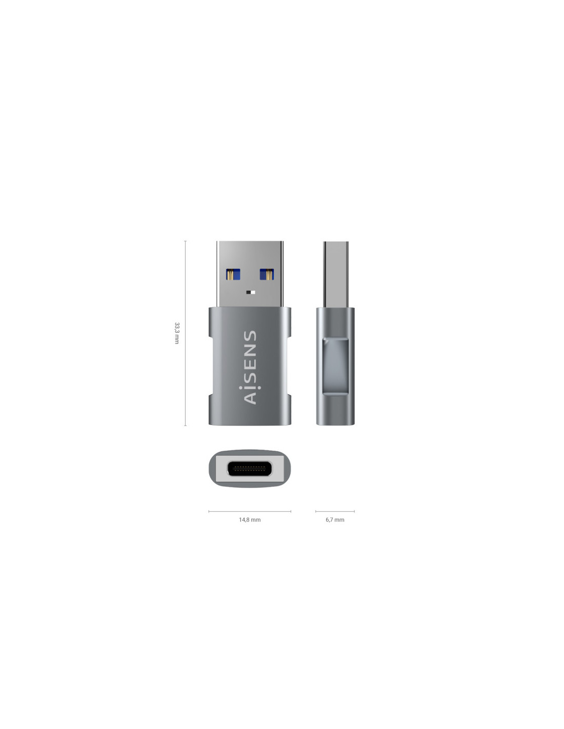 AISENS® – Adaptador USB 3.2 GEN2 10G con conector tipo USB-C hembra en un extremo y tipo A macho en el otro.