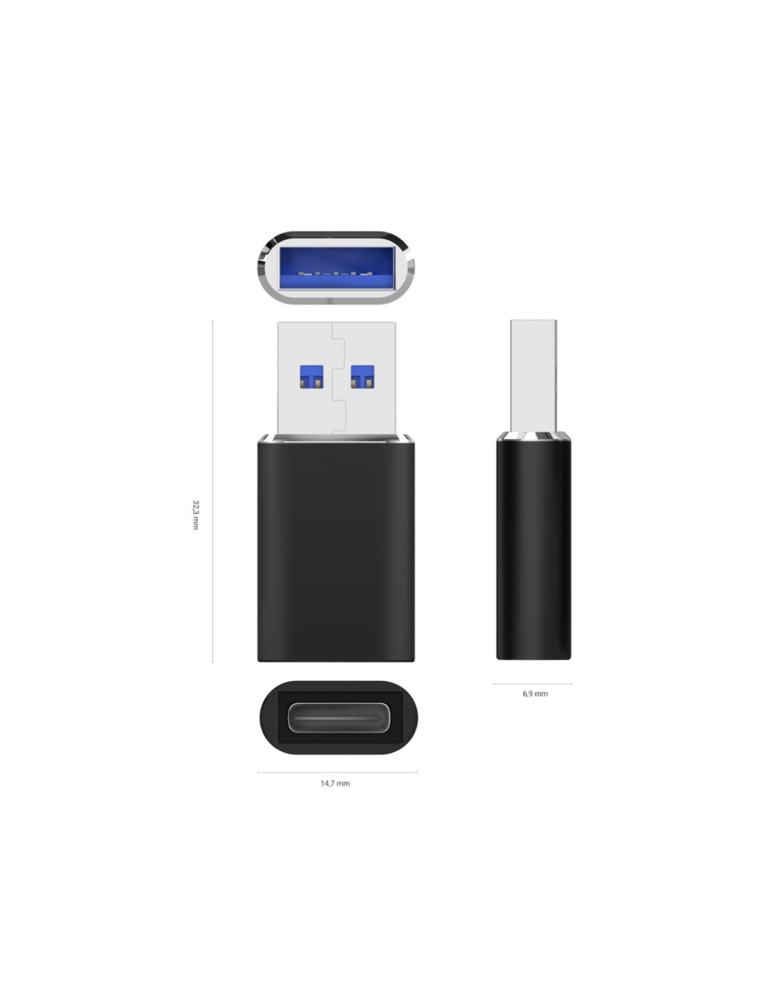 AISENS® – Mini Adaptador USB 3.2 Gen2 / USB 2.0 3A, Tipo USB-C/H-A/M, Negro
