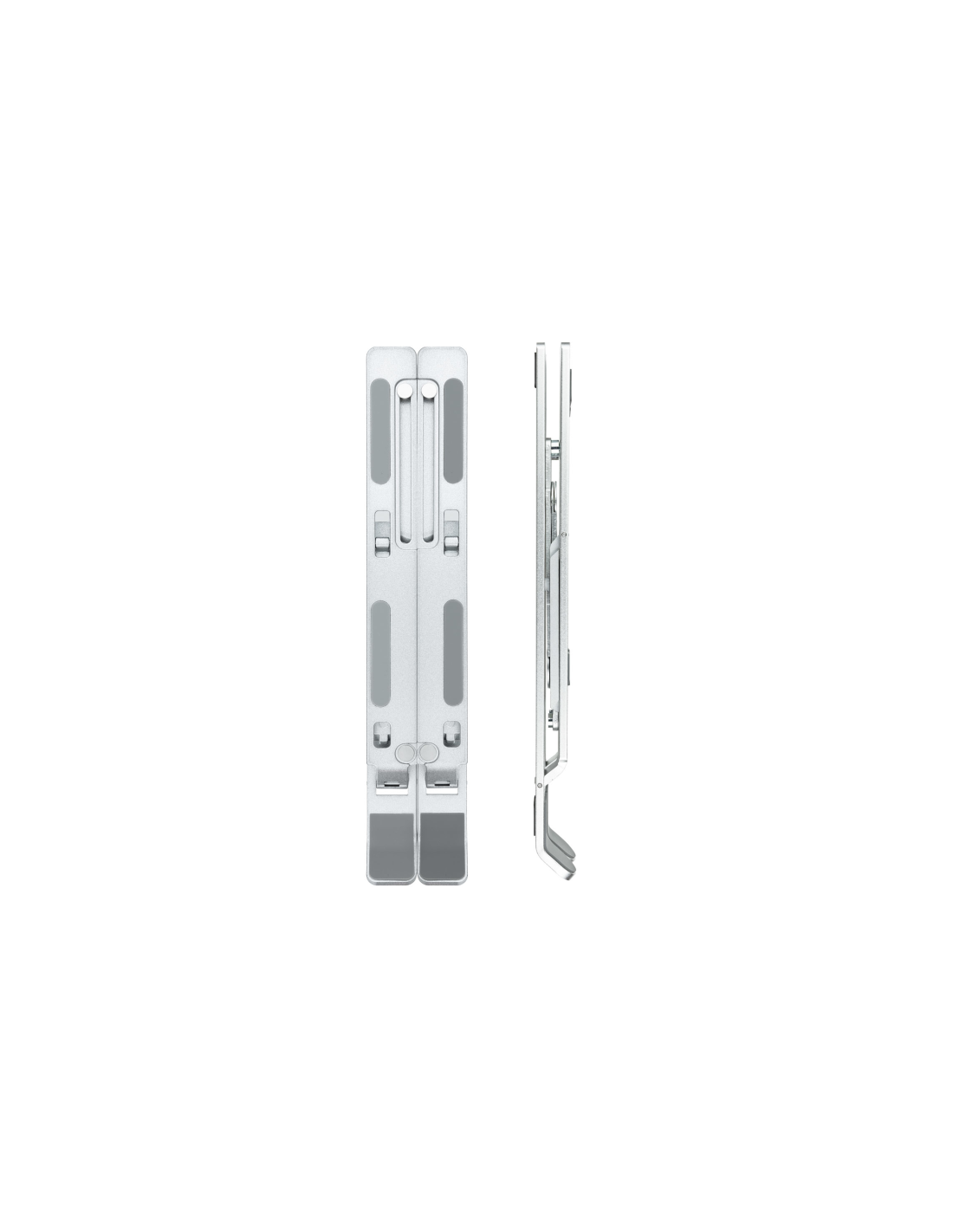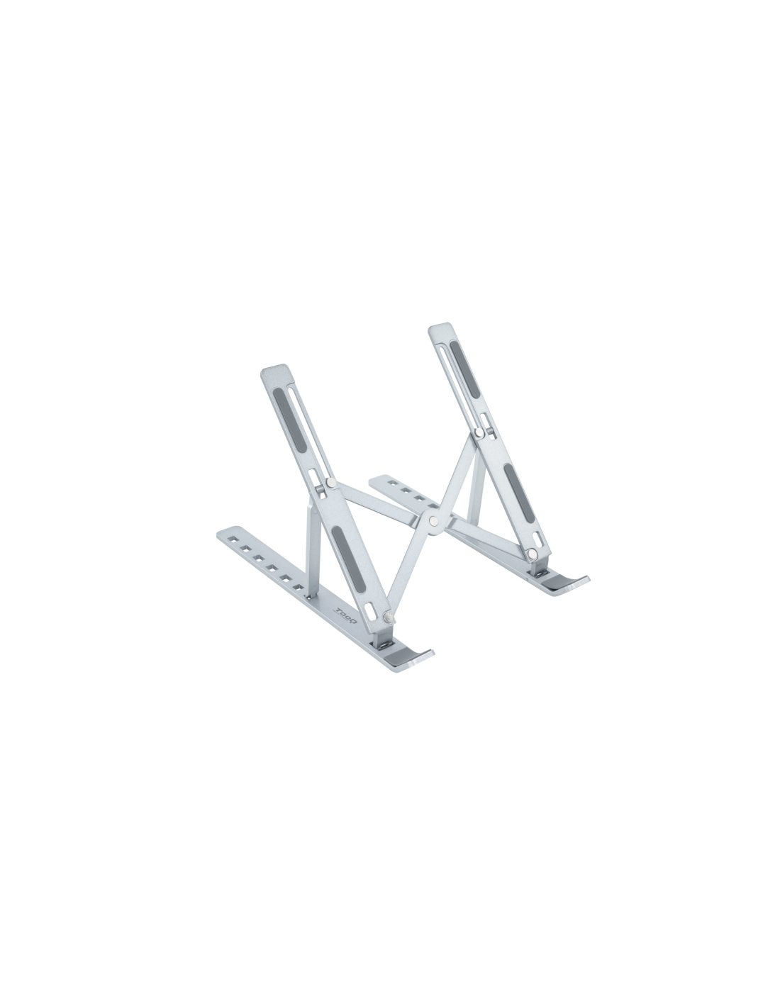 TooQ Soporte Elevador para Portátiles, Tablets, Móviles y Libros, Plata. Tipo de producto: Soporte para ordenador portátil, Color del producto: Plata, Compatibilidad mínima de tamaño con pantallas de ordenadores portátiles: 27,9 cm (11"). Rango de ajustes de altura: 13 - 145 mm, Rango de ajuste a anchura: 44 - 165 mm. Profundidad: 240 mm, Peso: 234 g. Ancho del paquete: 52 mm, Profundidad del paquete: 25 mm, Altura del paquete: 255 mm