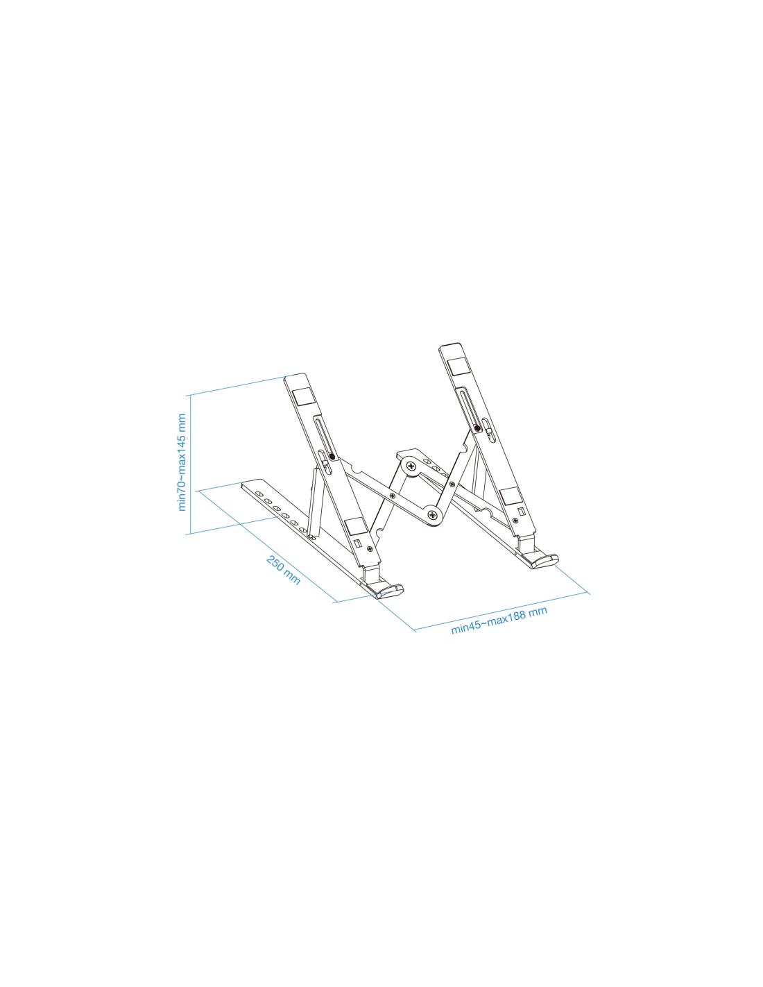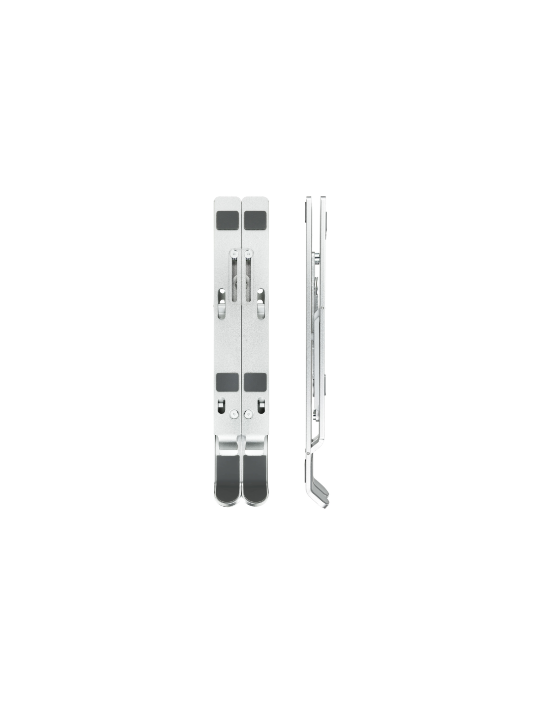 TooQ TQLRS0033-AL. Tipo de producto: Soporte para ordenador portátil y tableta, Color del producto: Plata, Material: Aluminio. Rango de ajustes de altura: 70 - 145 mm, Rango de ajuste a anchura: 45 - 188 mm. Ancho: 188 mm, Profundidad: 250 mm, Altura: 145 mm. Ancho del paquete: 50 mm, Profundidad del paquete: 265 mm, Altura del paquete: 26 mm