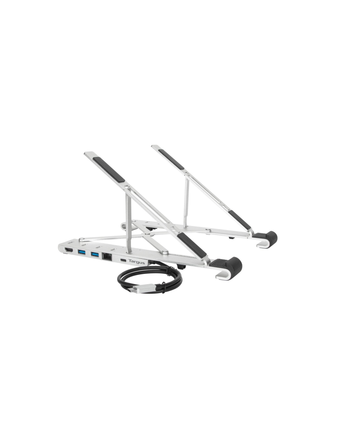 Targus AWU100005GL. Tipo de producto: Soporte para ordenador portátil, Color del producto: Plata, Material: Aluminio. Interfaz de host: USB 3.2 Gen 1 (3.1 Gen 1) Type-C, Tasa de transferencia de datos USB: 5000 Mbit/s, Entrega de energía USB (USB Power Delivery) de hasta: 100 W. Ancho: 62 mm, Profundidad: 260 mm, Altura: 27 mm. Cables incluidos: USB Tipo C