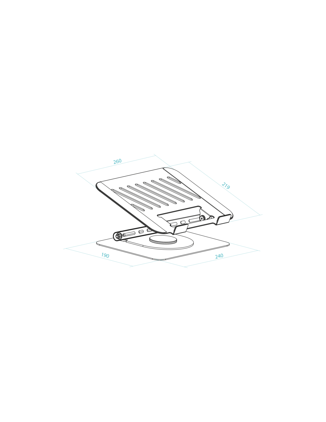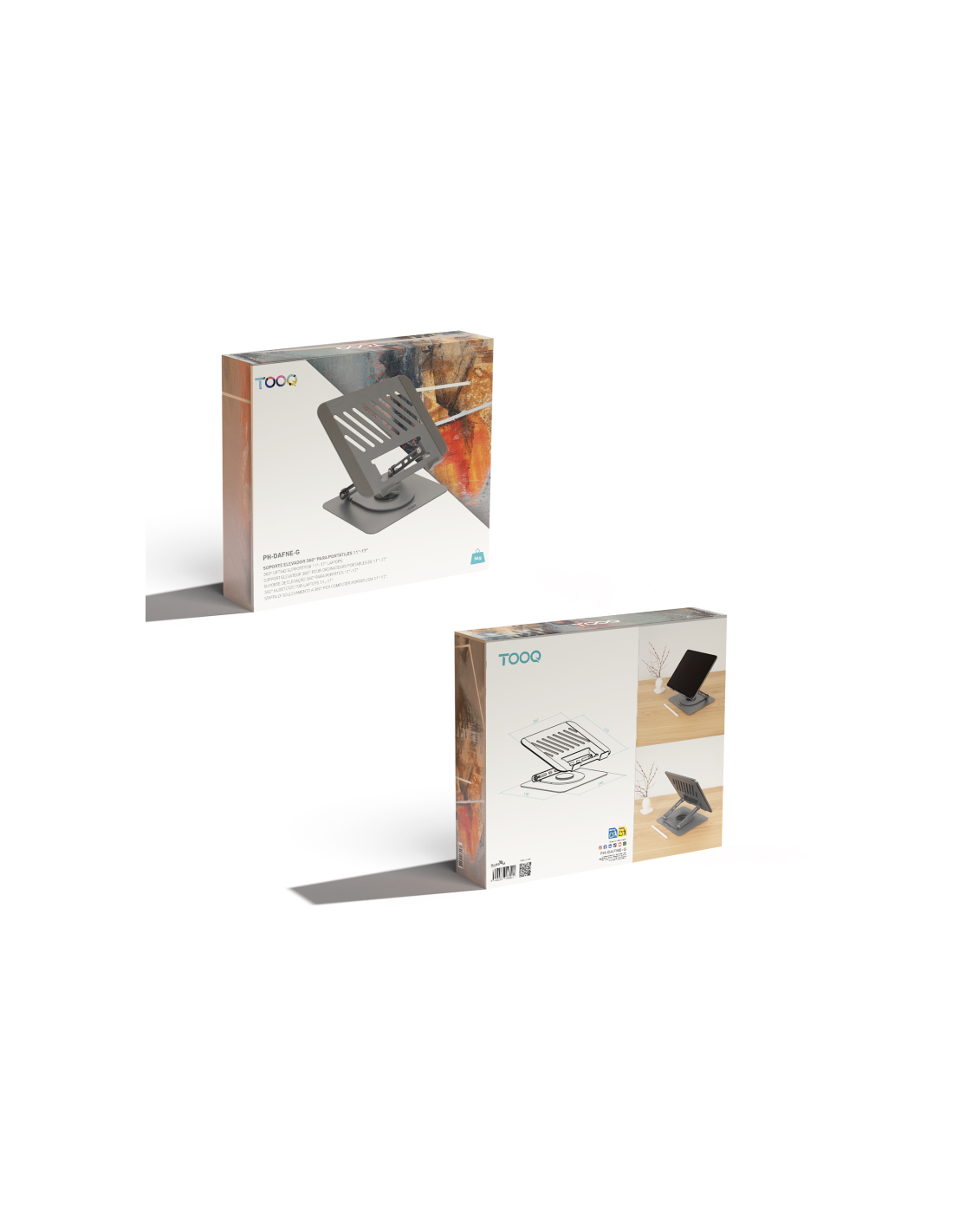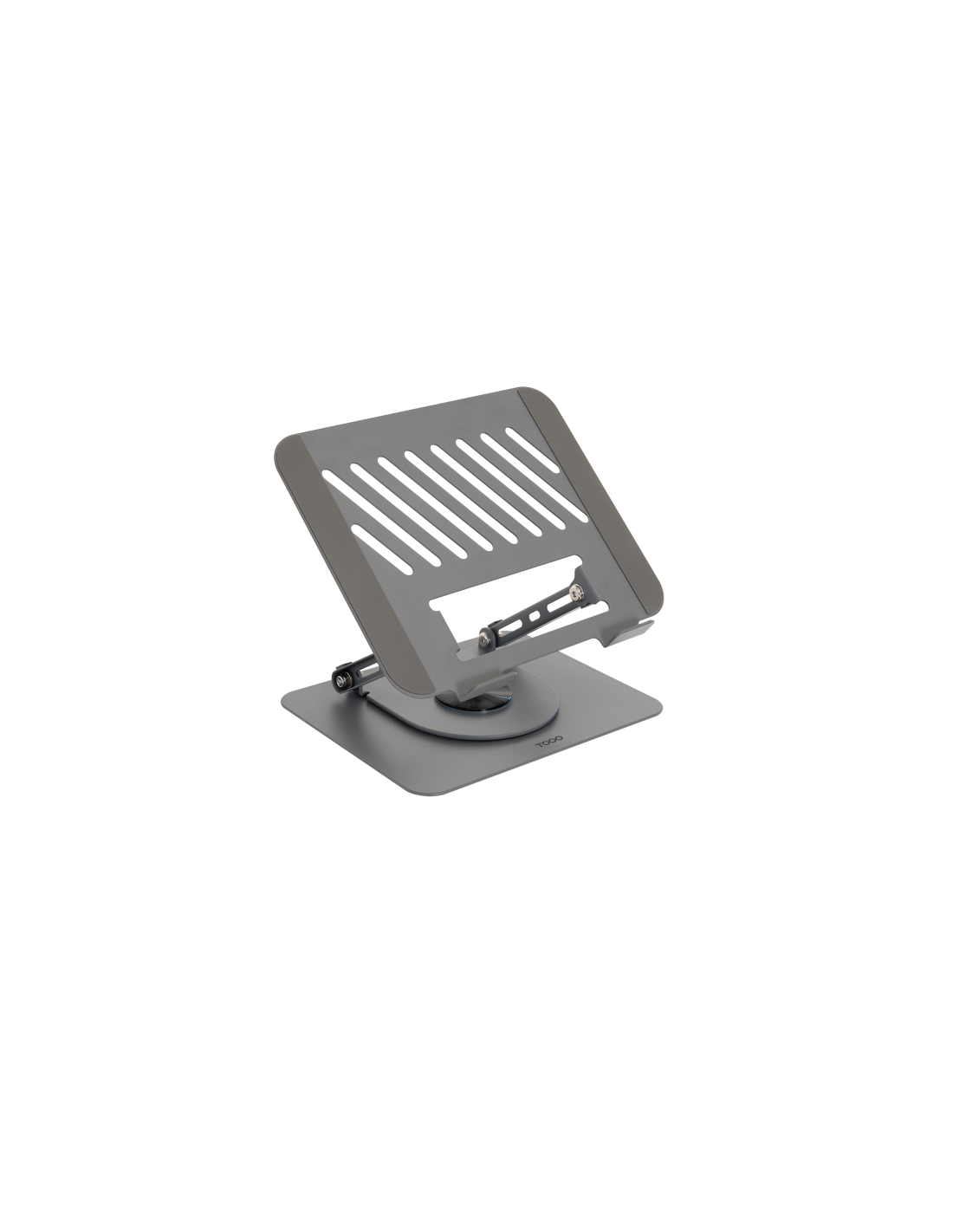 TooQ Soporte Elevador con rotación 360° y ajustable, para dispositivos de 11”-17”, Color Gris Oscuro. Tipo de producto: Soporte para ordenador portátil, Color del producto: Gris, Material: Acero. Ángulo de rotación: 360°. Ancho: 260 mm, Profundidad: 220 mm, Altura: 130 mm. Ancho del paquete: 280 mm, Profundidad del paquete: 230 mm, Altura del paquete: 55 mm