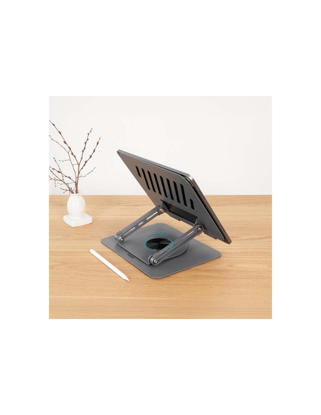 TooQ Soporte Elevador con rotación 360° y ajustable, para dispositivos de 11”-17”, Color Gris Oscuro