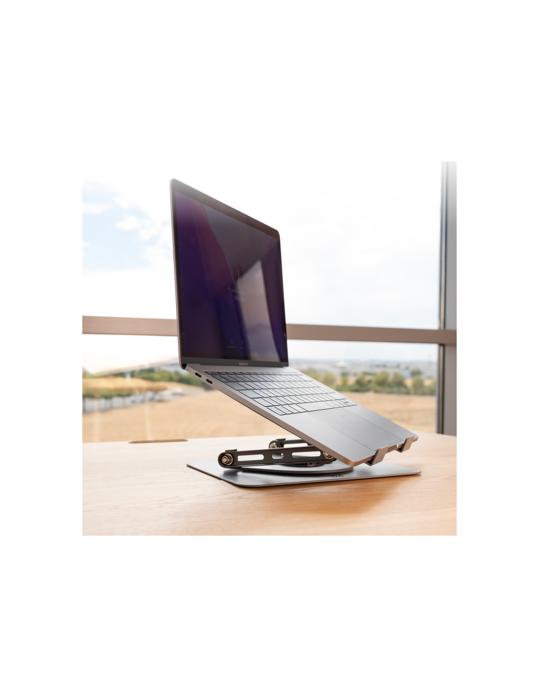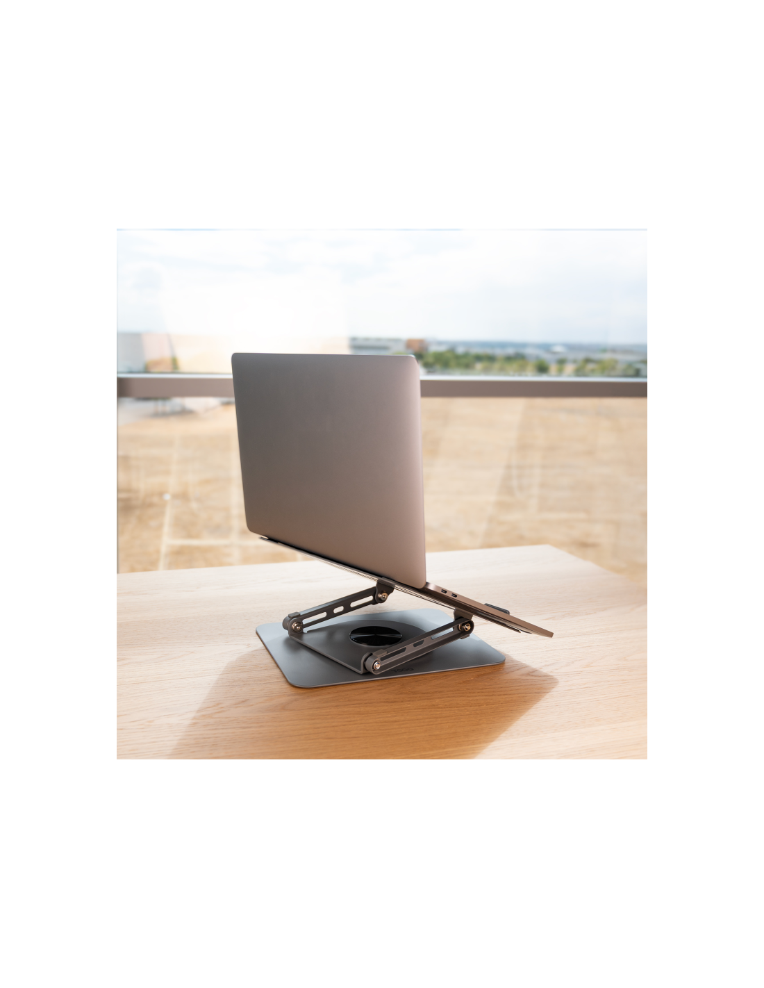 Ángulo de visión ajustable: permite un amplio rango de ajuste de altura y ángulo. Reduce la fatiga en cuello y ojos al alinear la pantalla a la altura de la vista.