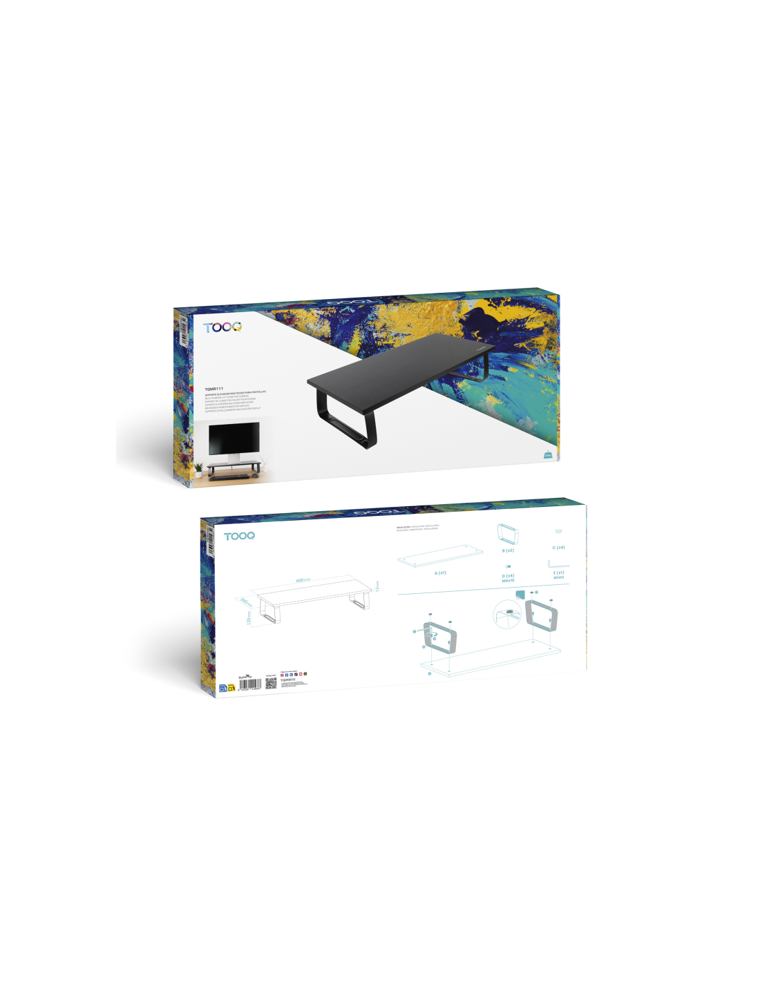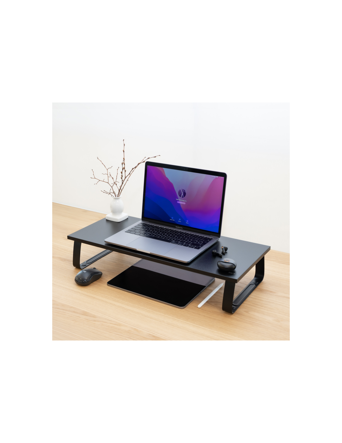 TooQ Soporte Elevador Multiusos para Monitor/Portátil, Negro. Tipo de producto: Soporte para ordenador portátil, Color del producto: Negro, Material: MDF, Acero. Ancho: 600 mm, Profundidad: 260 mm, Altura: 120 mm