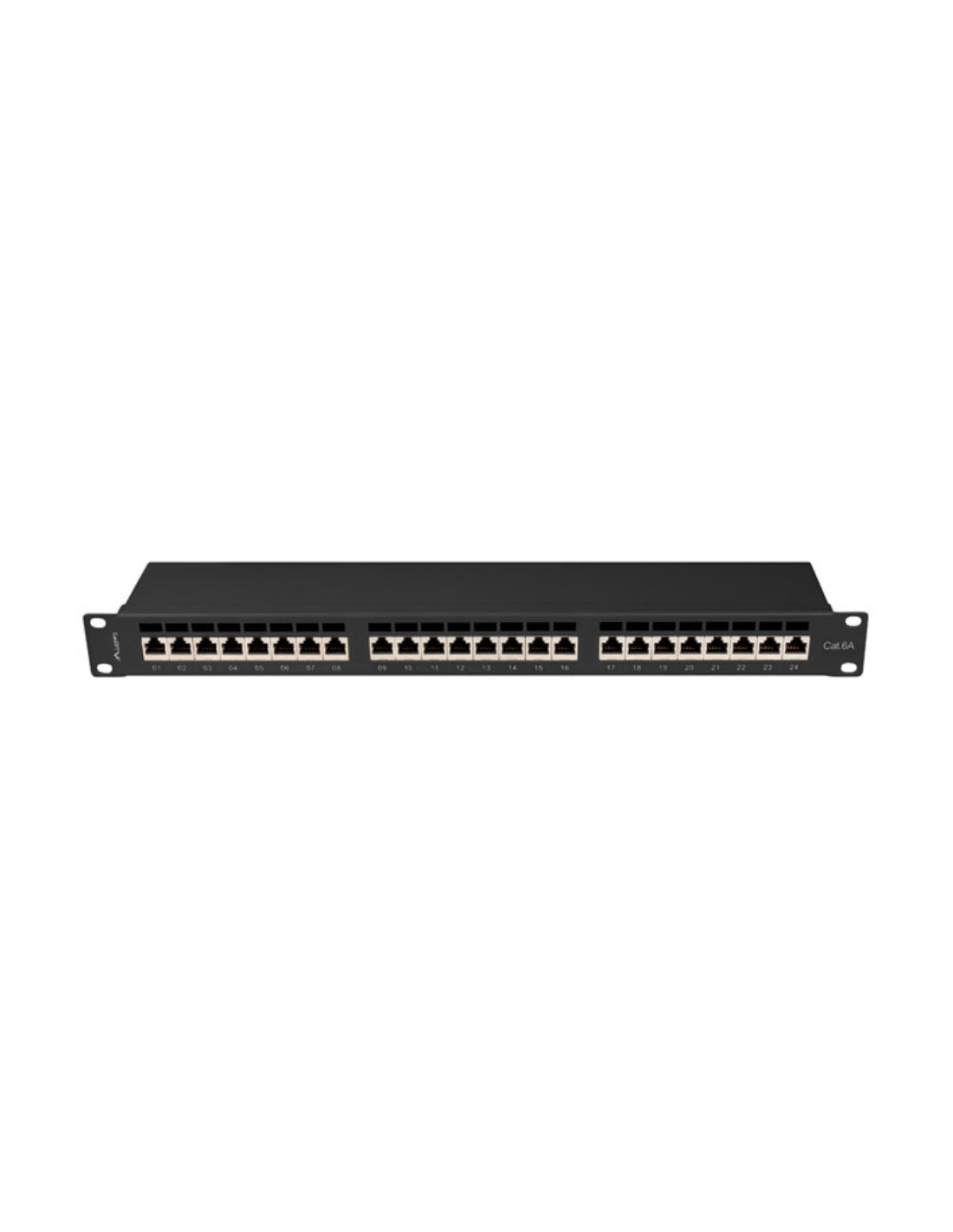 Lanberg PPSA-1024-B. Tipos de cable soportados: Cat6a, Blindaje de cable: F/UTP (FTP). Color del producto: Negro, Material: ABS, Metal, Montaje: Montaje en bastidor. Ancho: 445 mm, Altura: 44,5 mm, Profundidad: 102 mm