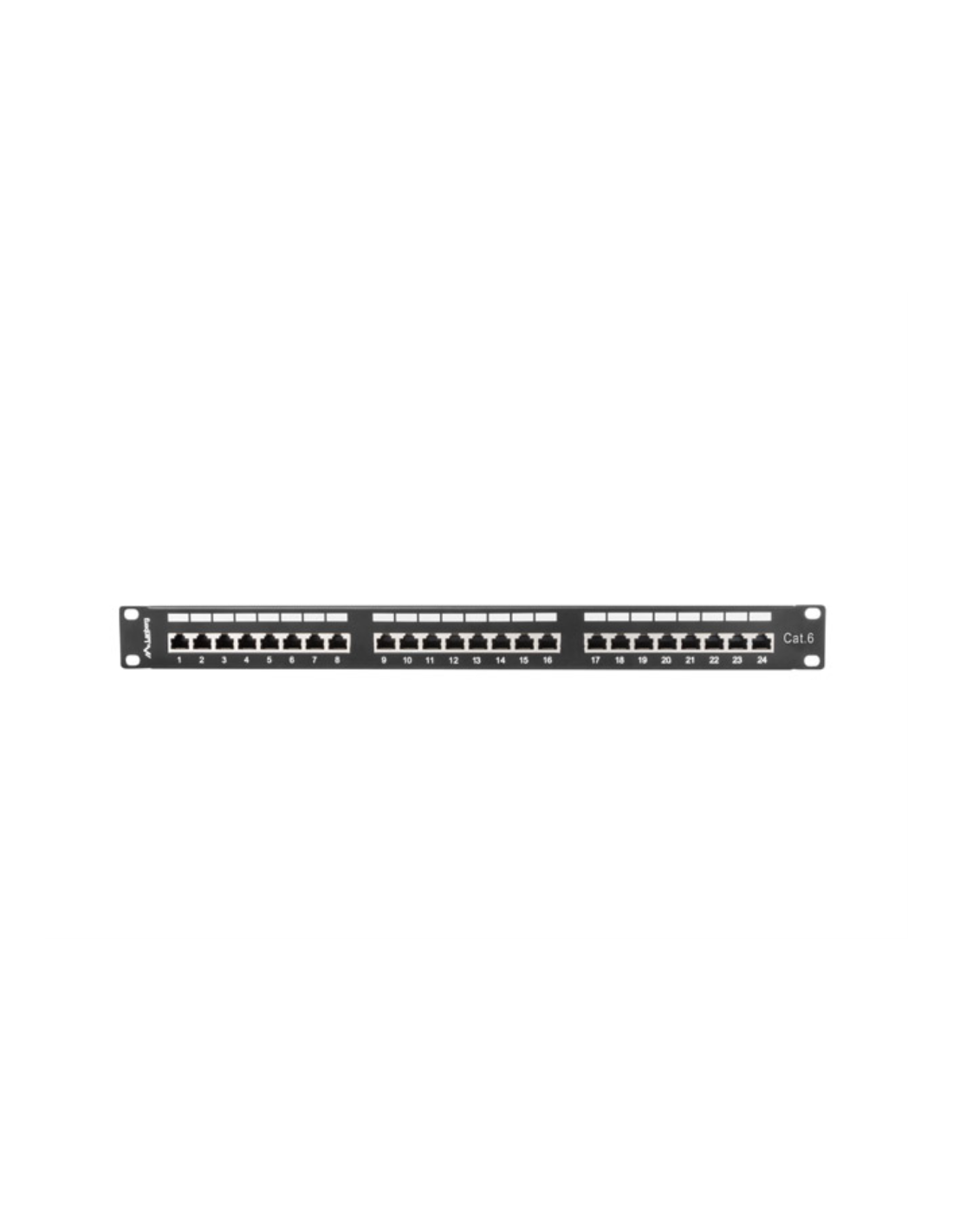 Lanberg PPS6-1024-B. Conector: RJ-45, Tipos de cable soportados: Cat6. Color del producto: Negro, Material: Metal, Capacidad del rack: 1U. Ancho: 442 mm, Altura: 44,5 mm, Profundidad: 114,5 mm