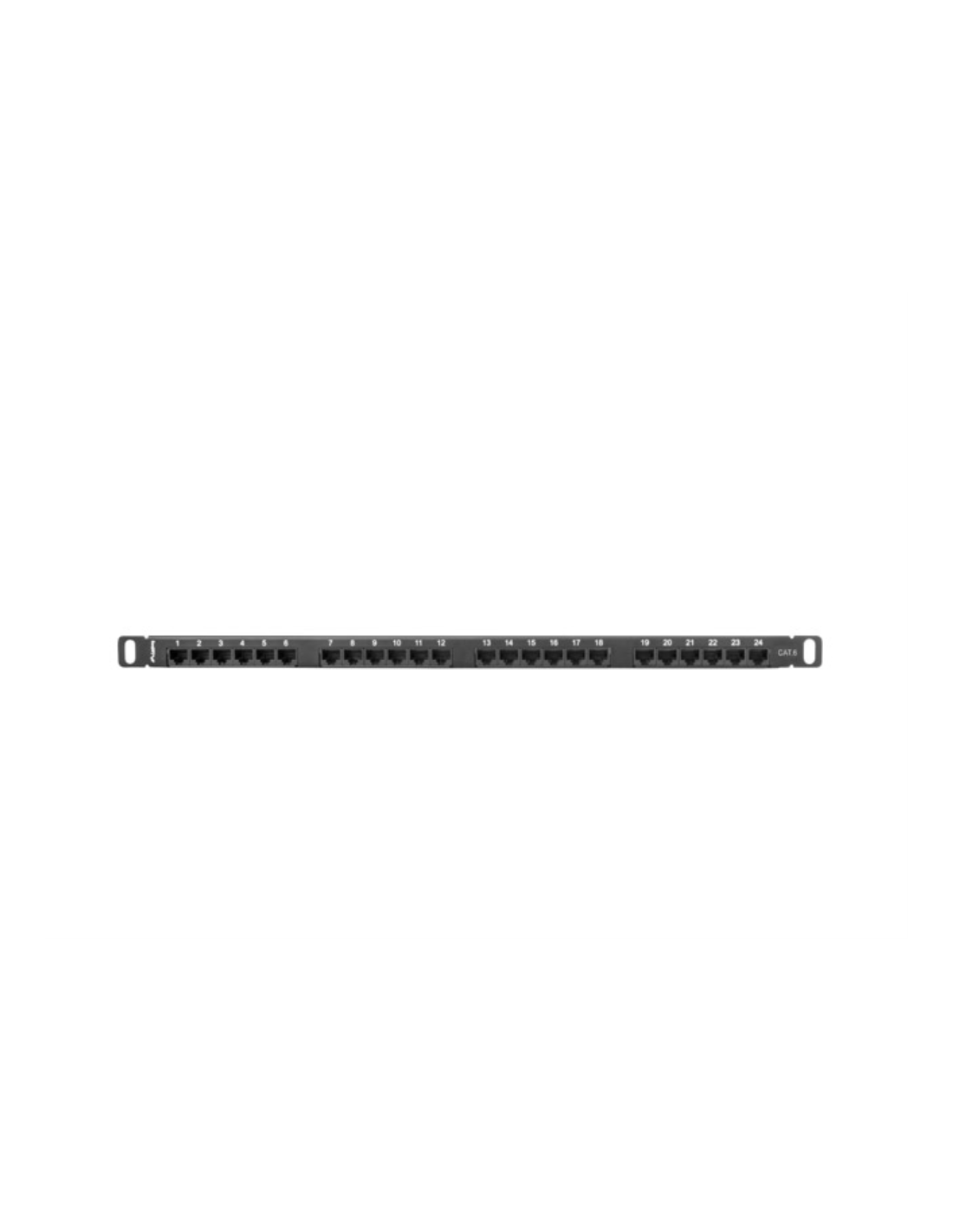 Lanberg PPU6-0024-B. Conector: RJ-45, Tipos de cable soportados: Cat6. Color del producto: Negro, Material: Metal, Montaje: Montaje en bastidor. Ancho: 440 mm, Altura: 22,2 mm, Profundidad: 99 mm