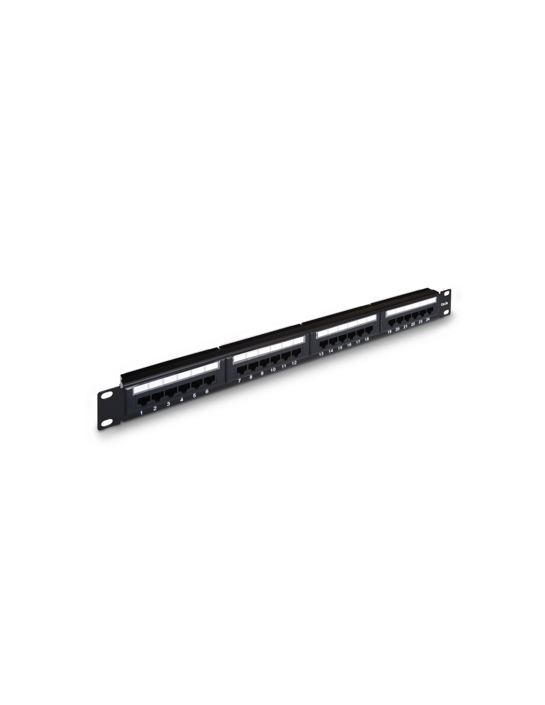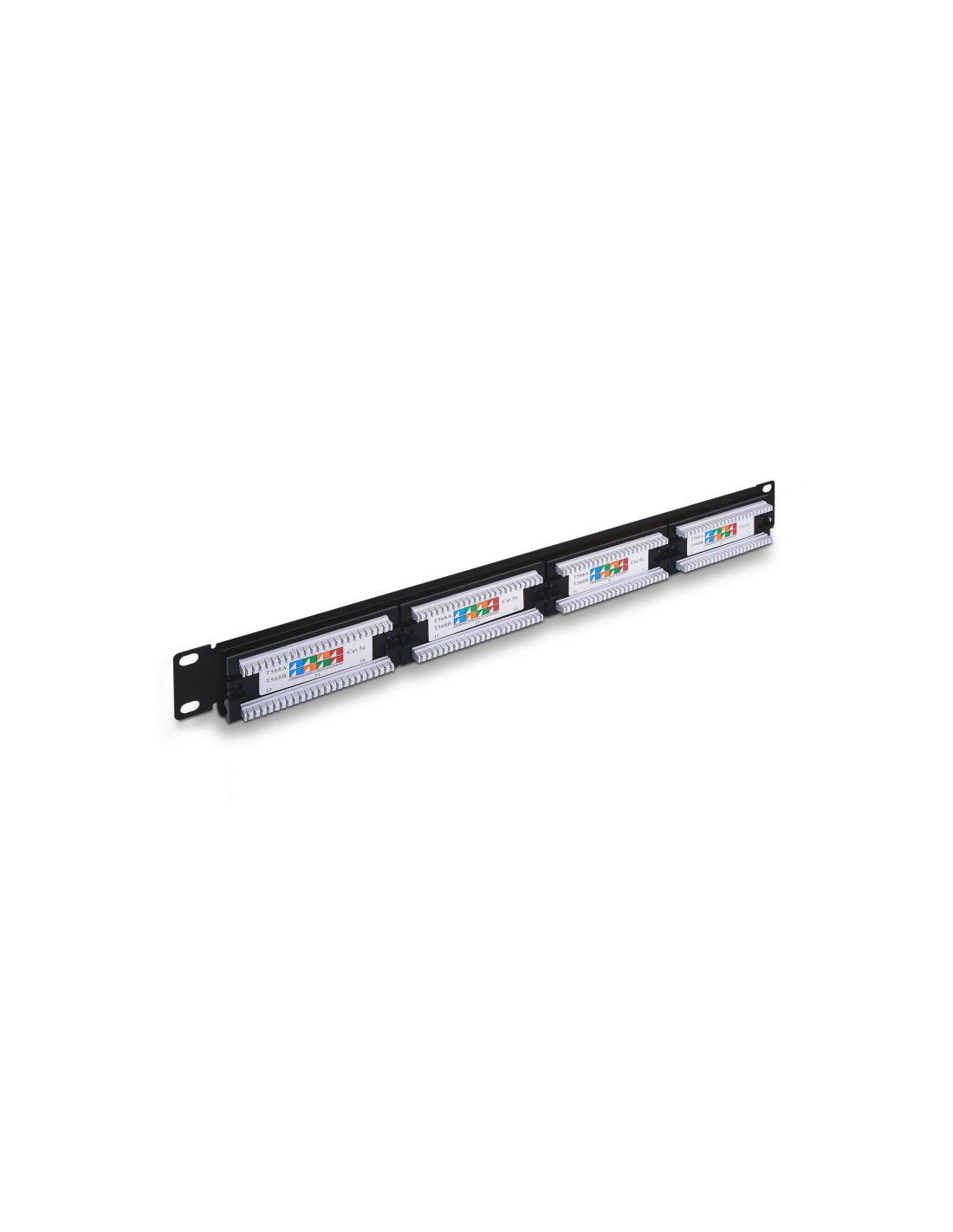 AISENS A141-0307. Conector: RJ-45, Tipos de cable soportados: Cat5e, Blindaje de cable: U/UTP (UTP). Color del producto: Negro, Montaje: Montaje en bastidor, Capacidad del rack: 1U. Certificados de conformidad: RoHS, Certificación: T568A, T568B. Altura: 44,5 mm. Ancho del paquete: 500 mm, Profundidad del paquete: 100 mm, Altura del paquete: 55 mm