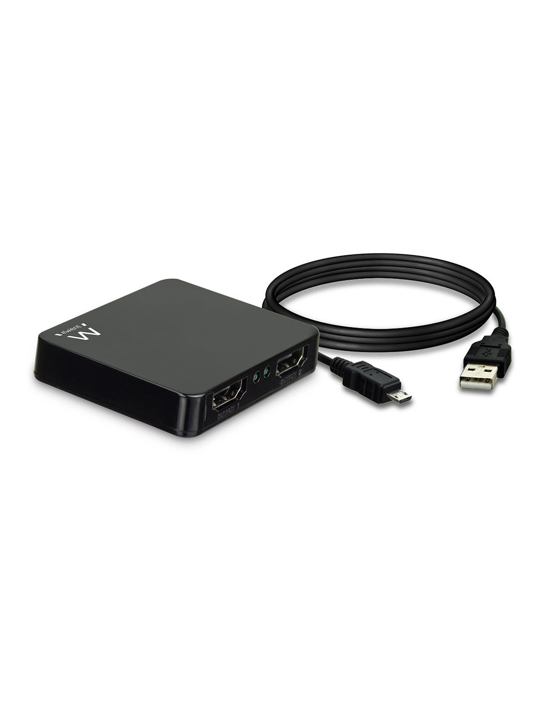 El EW3720 está equipado con una entrada HDMI y dos salidas HDMI para poder mostrar sus vídeos en varias pantallas. El Divisor le permite visualizar la misma fuente de vídeo en 2 pantallas de destino a una distancia máxima de 5 metros sin comprometer la calidad del vídeo. El EW3720 incluye indicadores LED de alimentación y de estado rojos y verdes.