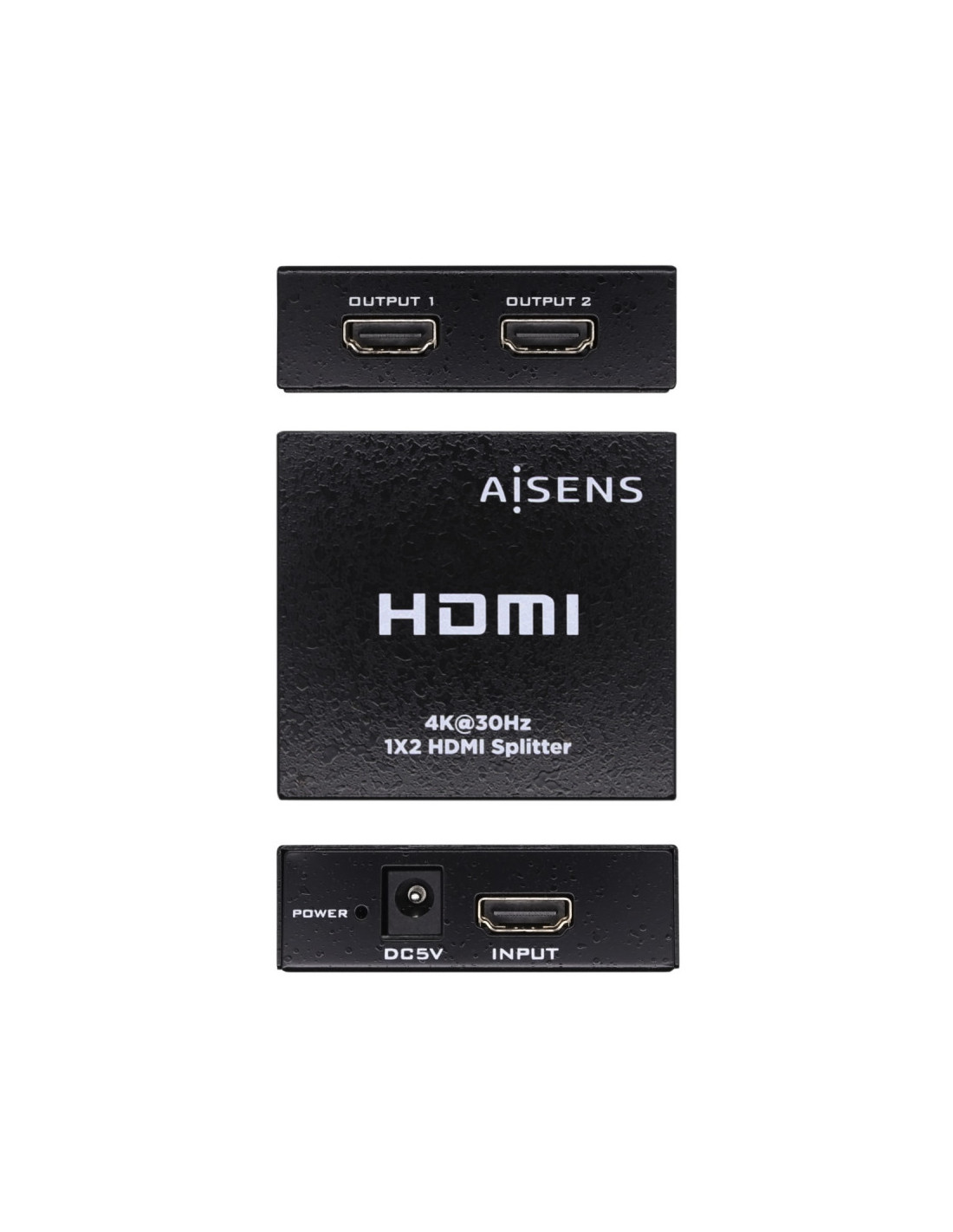 HDMI duplicador (splitter) 1x2 (una entrada, dos salidas) con fuente de alimentación.
