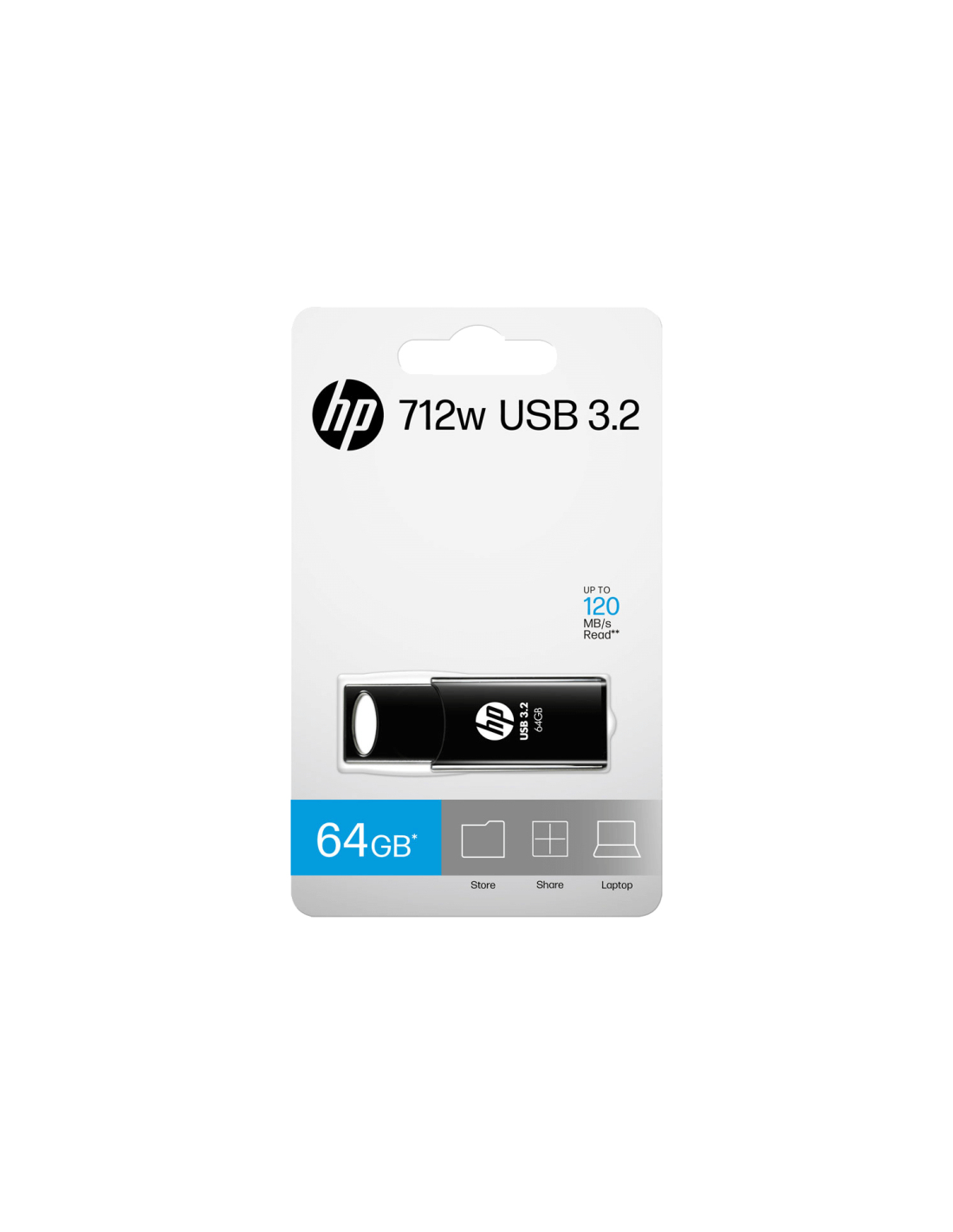 HP 712w. Capacidad: 64 GB, Interfaz del dispositivo: USB tipo A, Versión USB: 3.2 Gen 1 (3.1 Gen 1), Velocidad de lectura: 120 MB/s. Factor de forma: Deslizar. Peso: 10,2 g. Color del producto: Negro