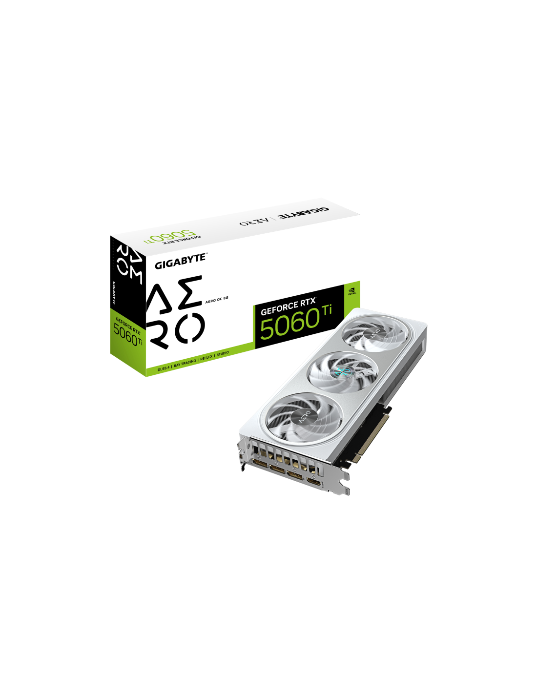 GIGABYTE GeForce RTX 5060 Ti AERO OC 8G Tarjeta Gráfica – 8 GB GDDR7, 128 bits, PCI-E 5.0, 2647 MHz Frecuencia del núcleo, 3 x D