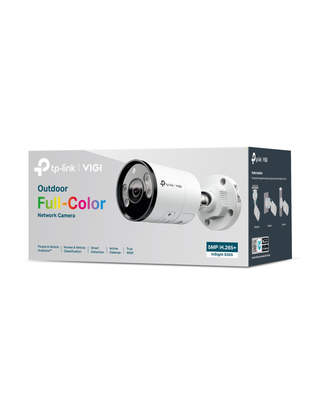 TP-Link INSIGHT S355. Tipo: Cámara de seguridad IP, Colocación soportada: Exterior, Tecnología de conectividad: Alámbrico. Tipo de montaje: Pared, Color del producto: Blanco, Factor de forma: Bala (forma). Ángulo de visión de la lente, horizontal: 88°, Ángulo de visión de la lente, vertical: 46°, Ángulo de visión de la lente, diagonal: 105.4°. Tipo de sensor: CMOS, Tamaño del sensor óptico: 25,4 / 2,7 mm (1 / 2.7"). Distancia de detección: 80 m, Distancia de observación: 33 m, Distancia de reconocimiento: 1