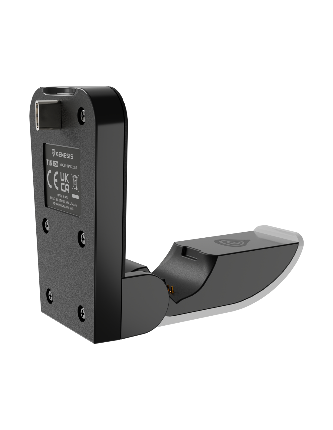 ¿Quieres una forma aún más cómoda de reponer la energía de tus gamepads? Coge el GENESIS Tin 300. Este cargador compacto es fácil de usar. Todo lo que tienes que hacer es conectarlo al puerto USB-C de la consola, desplegarlo y colocar tu mando sobre él. El proceso de carga se iniciará automáticamente. Es muy sencillo.