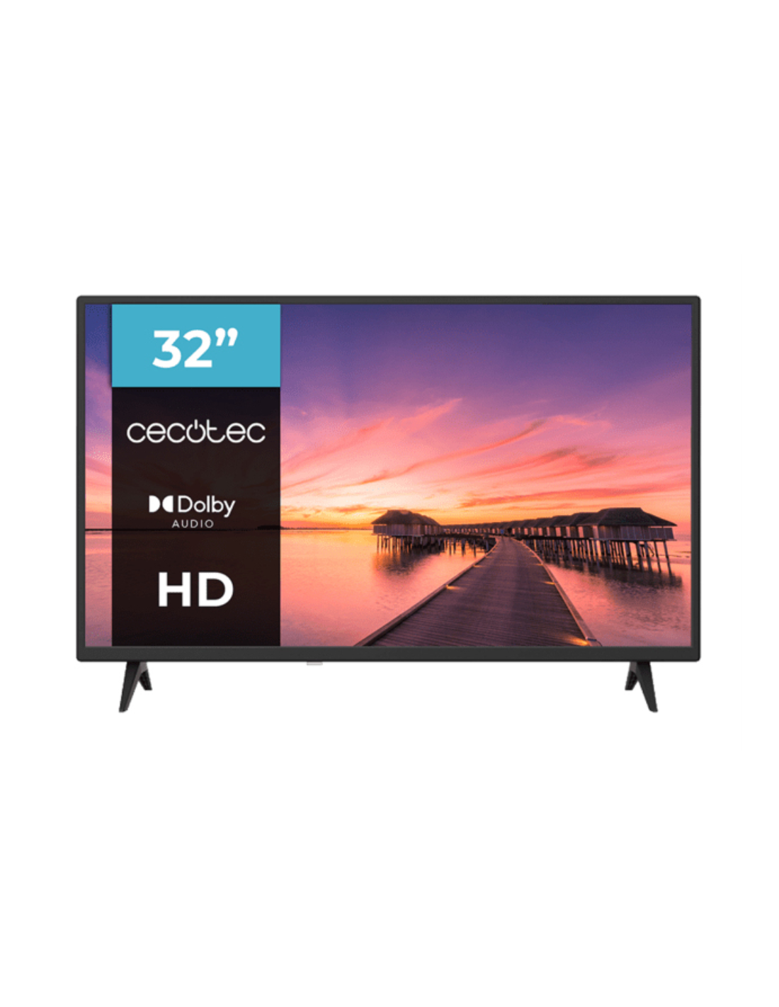 Cecotec 02613. Diagonal de la pantalla: 81,3 cm (32"), Resolución de la pantalla: 1366 x 768 Pixeles, Tipo HD: HD, Tecnología de visualización: LCD, Forma de la pantalla: Plana, Tipo de retroiluminación LED: Direct-LED, Relación de aspecto nativa: 16:9. Formato de señal digital: DVB-C, DVB-S, DVB-S2, DVB-T, DVB-T2. Color del producto: Negro
