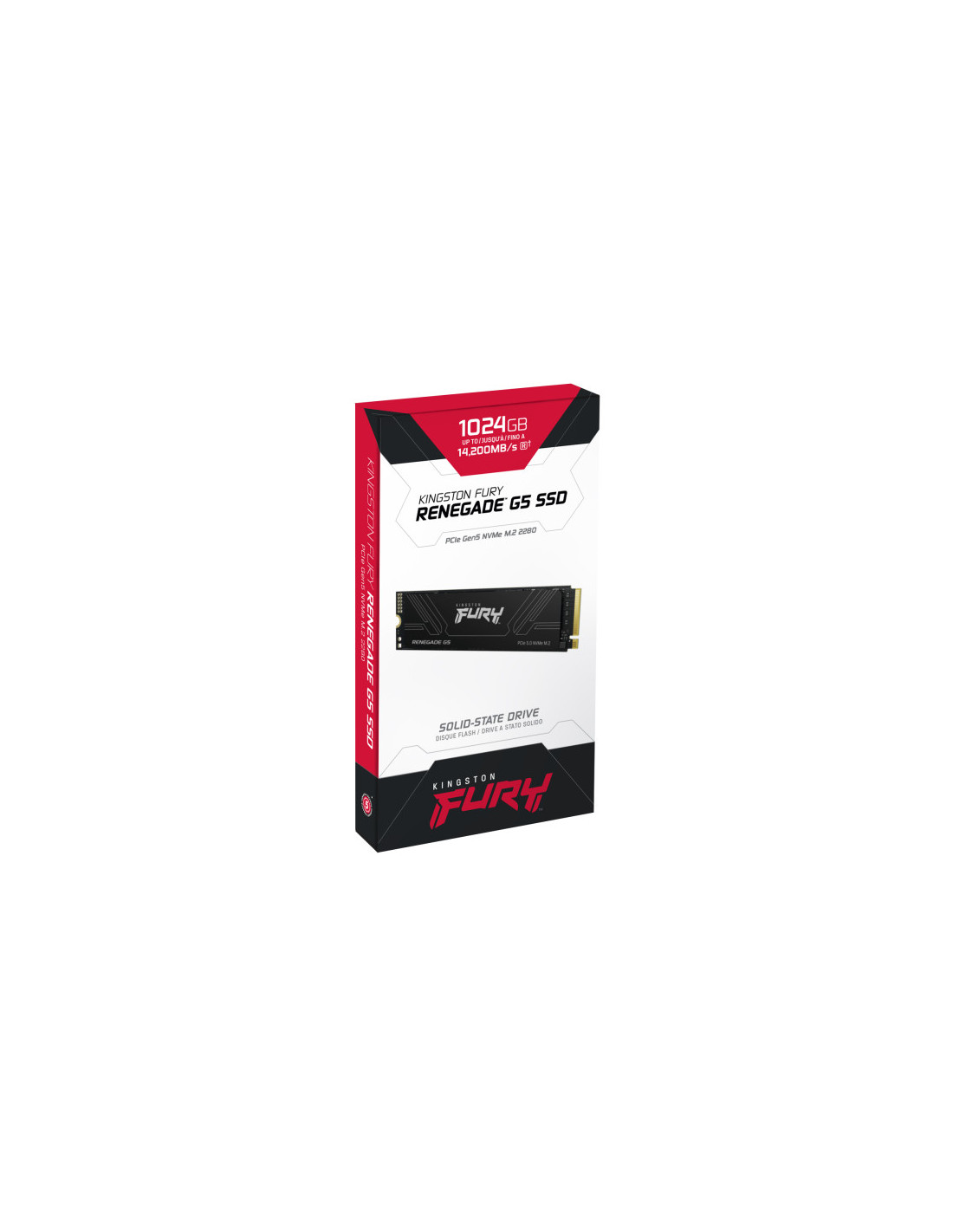 La unidad SSD M.2 Kingston FURY™ Renegade G5 NVMe PCIe 5.0 está diseñada para superusuarios, entusiastas del hardware y jugadores listos para el último rendimiento Gen 5x4. Con velocidades de hasta 14.800MB/s de lectura y 14.000MB/s de escritura, su rendimiento extremo aumenta los tiempos de carga de juegos y aplicaciones y mejora el tiempo de reacción, mientras que su diseño excepcional lo mantiene fresco.