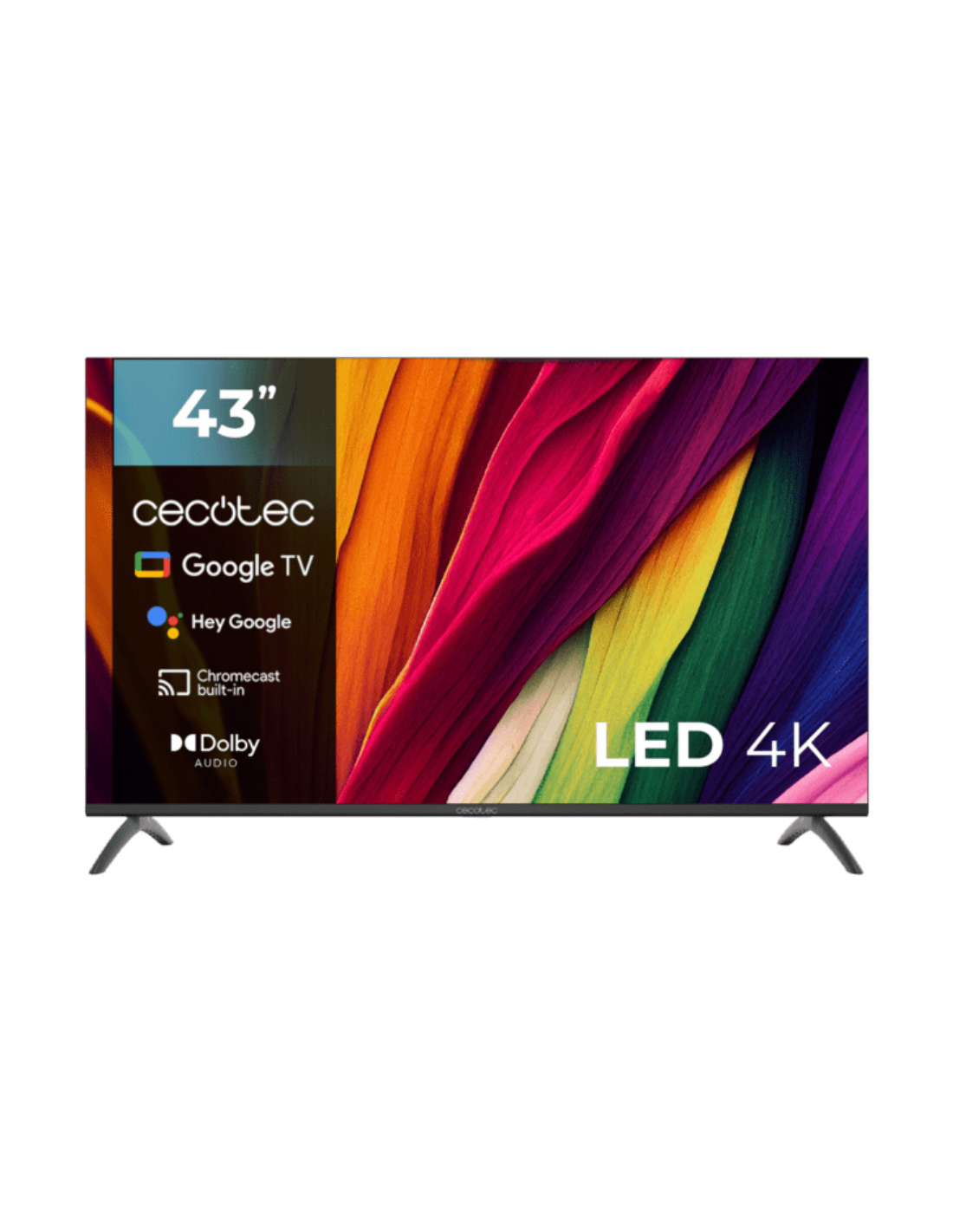 Cecotec ALU40043. Diagonal de la pantalla: 109,2 cm (43"), Resolución de la pantalla: 3840 x 2160 Pixeles, Tipo HD: 4K Ultra HD, Tecnología de visualización: LED, Forma de la pantalla: Plana. Smart TV. Relación de aspecto nativa: 16:9. Color del producto: Negro