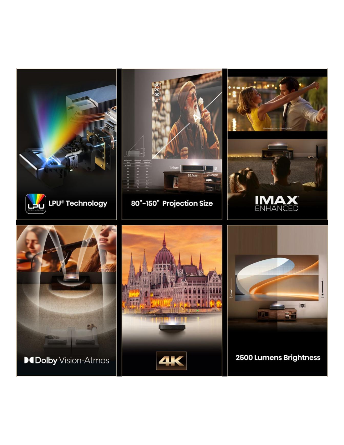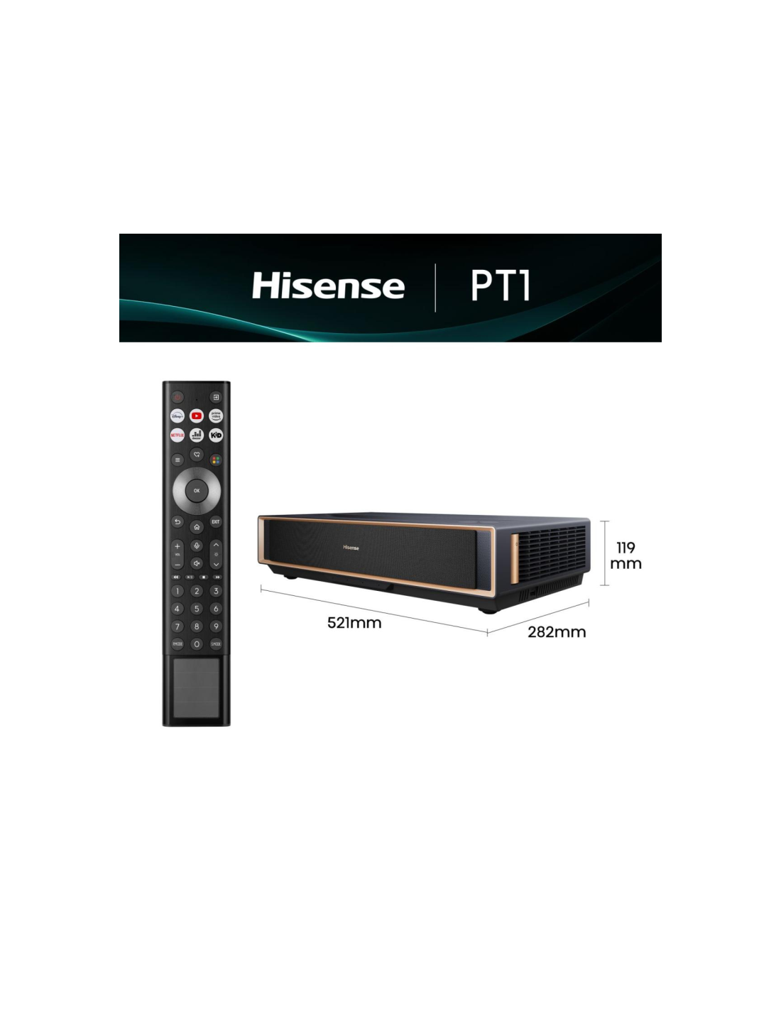 Hisense PT1. Razón de contraste (típica): 3000:1, Relación de aspecto nativa: 16:9. Versión HDMI: 2.0/2.1. Wi-Fi estándares: 802.11a, 802.11b, 802.11g, Wi-Fi 4 (802.11n), Wi-Fi 5 (802.11ac). Color del producto: Negro, Tecnología HDR (High Dynamic Range, Alto rango dinámico): Dolby Vision, High Dynamic Range 10 (HDR10), High Dynamic Range 10+ (HDR10 Plus), Hybrid Log-Gamma..., Sistema operativo instalado: VIDAA U. Potencia estimada RMS: 46 W, Decodificadores incorporados: Dolby Atmos, IMAX Enhanced