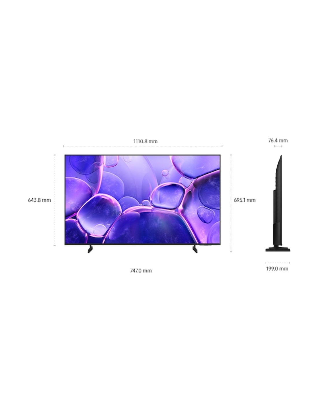 Samsung U8000F UE50U8072FUXXH. Diagonal de la pantalla: 127 cm (50"), Resolución de la pantalla: 3840 x 2160 Pixeles, Tipo HD: 4K Ultra HD, Tecnología de visualización: LED, Forma de la pantalla: Plana. Smart TV. Tecnología de interpolación de movimiento: Motion Xcelerator, Relación de aspecto nativa: 16:9. Formato de señal digital: DVB-C, DVB-S2, DVB-T2. Wifi, Ethernet. Color del producto: Negro