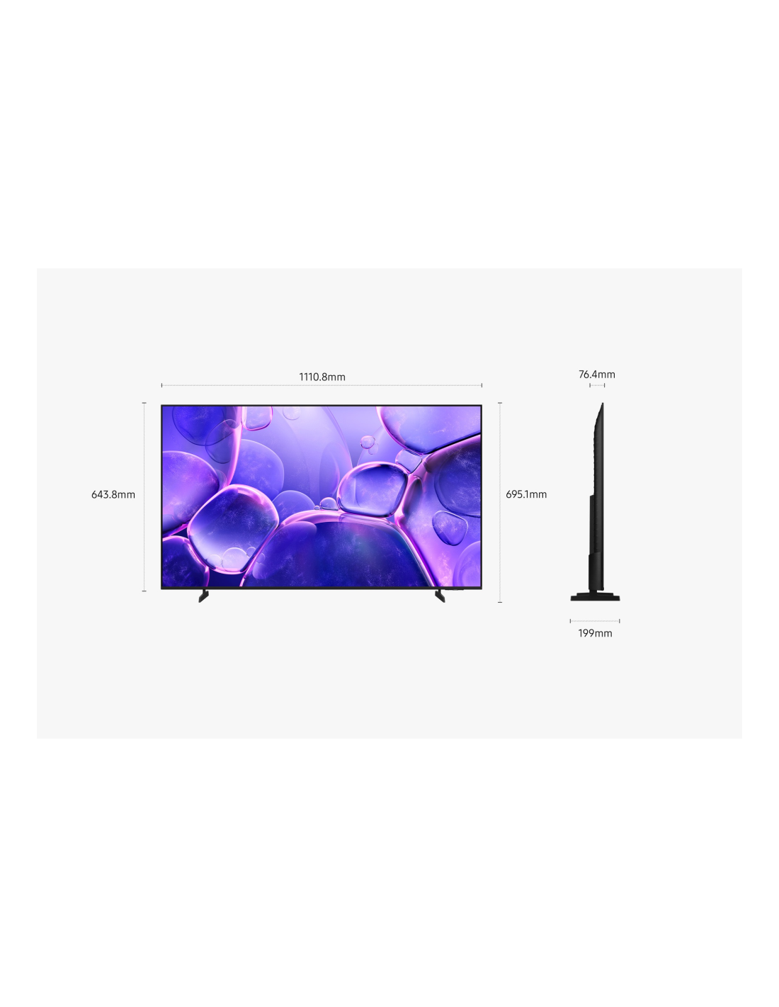 Samsung TU50U8005FU. Diagonal de la pantalla: 127 cm (50"), Resolución de la pantalla: 3840 x 2160 Pixeles, Tipo HD: 4K Ultra HD, Tecnología de visualización: LED, Forma de la pantalla: Plana. Smart TV. Tecnología de interpolación de movimiento: Motion Xcelerator, Relación de aspecto nativa: 16:9. Formato de señal digital: DVB-C, DVB-S2, DVB-T2. Wifi, Ethernet. Color del producto: Negro