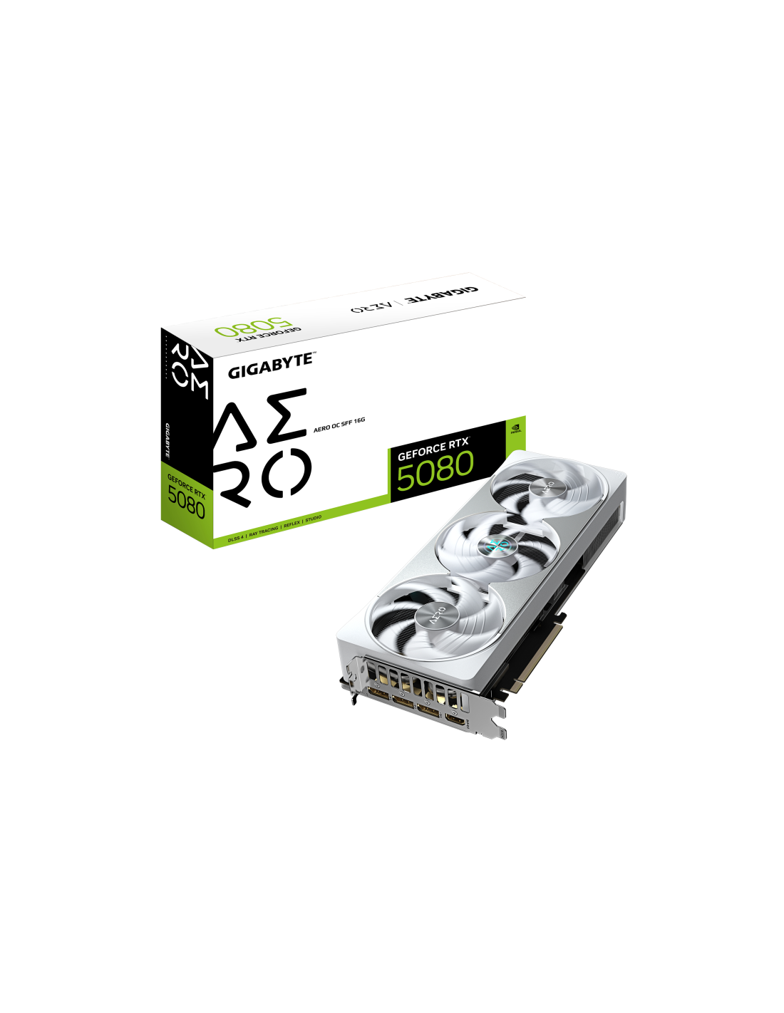 GIGABYTE GeForce RTX 5080 AERO OC SFF 16G Tarjeta Gráfica - 16GB GDDR7, 256 bits, PCI-E 5.0, 2730MHz Core Clock, 3 x DisplayPort, 1 x HDMI, GV-N5080AERO OC-16GD. Familia de procesadores de gráficos: NVIDIA, Procesador gráfico: GeForce RTX 5080, Frecuencia del procesador: 2730 MHz. Capacidad memoria de adaptador gráfico: 16 GB, Tipo de memoria de adaptador gráfico: GDDR7, Ancho de datos: 256 bit, Velocidad de memoria del reloj: 28000 MHz. Máxima resolución: 7680 x 4320 Pixeles. Versión DirectX: 12.0, Versión