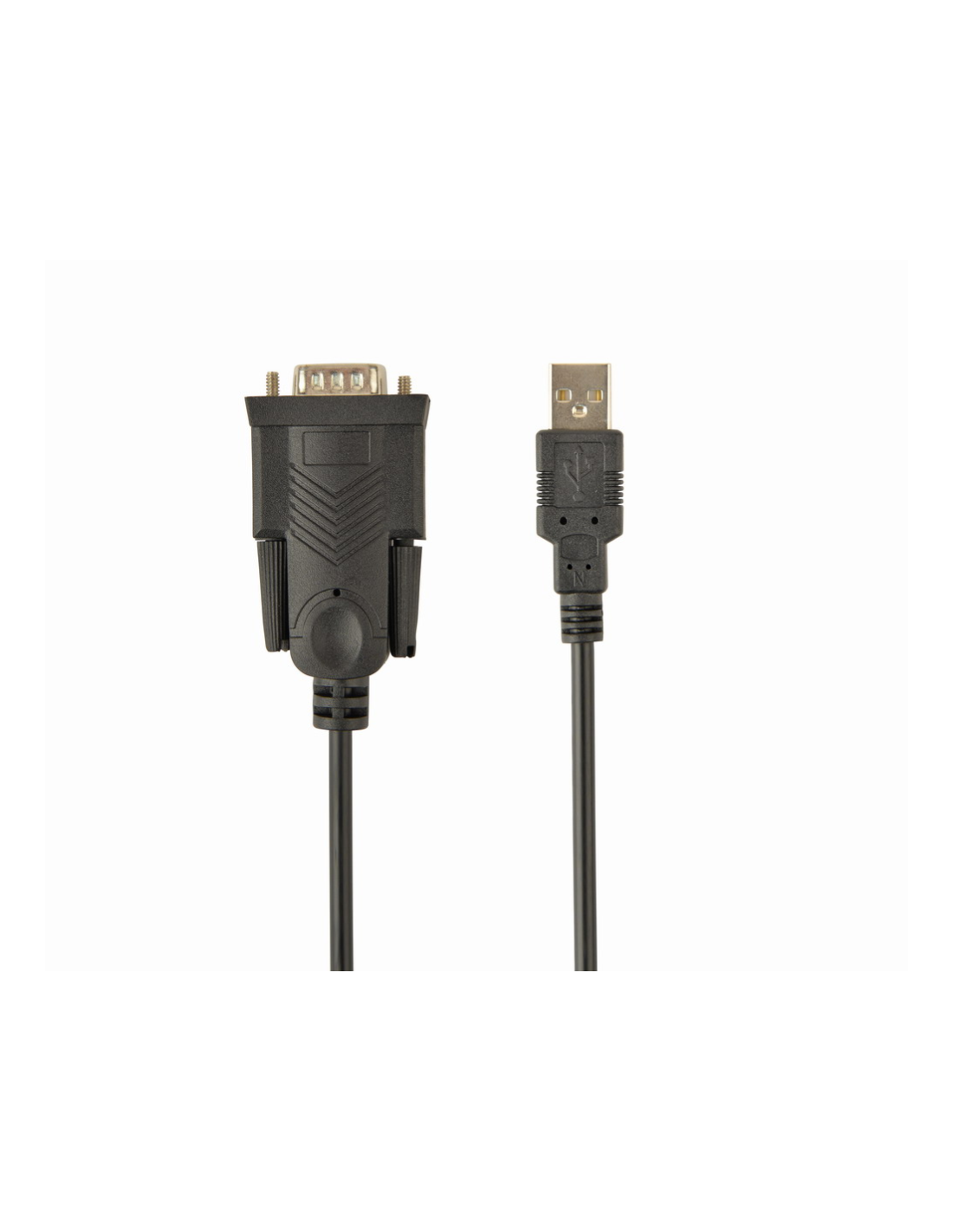 Gembird UAS-DB9M-02. Color del producto: Negro, Longitud de cable: 1,5 m, Conector 1: USB tipo A. Cantidad por paquete: 1 pieza(s), Ancho del paquete: 120 mm, Profundidad del paquete: 25 mm. Ancho: 110 mm, Altura: 25 mm, Peso: 154 g