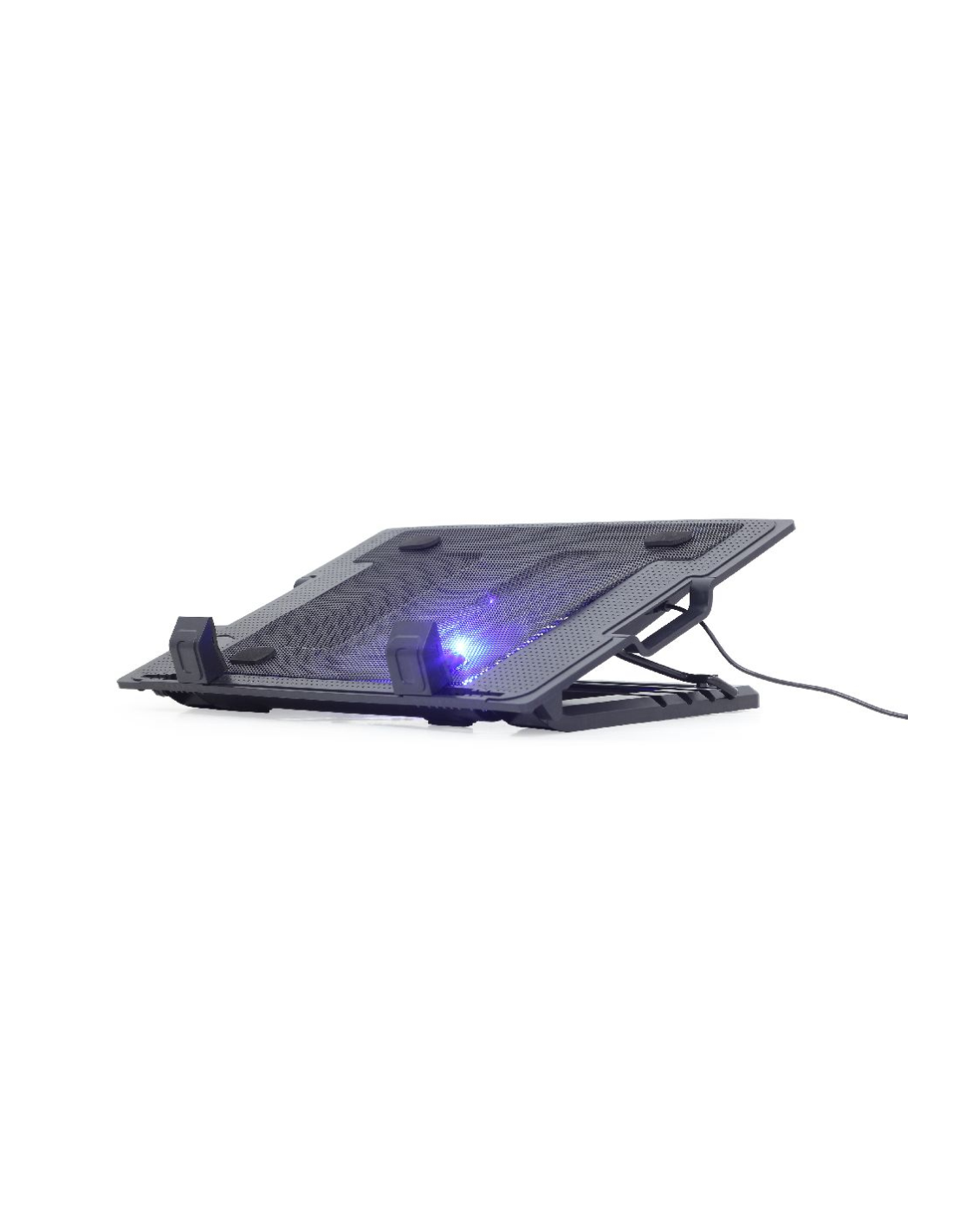 Gembird NBS-1F17T-01. Tamaño máximo de pantalla: 43,2 cm (17"), Número de ventiladores incluidos: 1 pieza(s), Diámetro de ventilador: 15 cm. Color del producto: Negro, Material: Metal, Plástico, Iluminación de color: Púrpura. Interfaz de host: USB. Alimentación: USB, Voltaje de entrada: 5 V, Consumo actual: 350 mA. Ancho: 265 mm, Profundidad: 370 mm, Altura: 33 mm