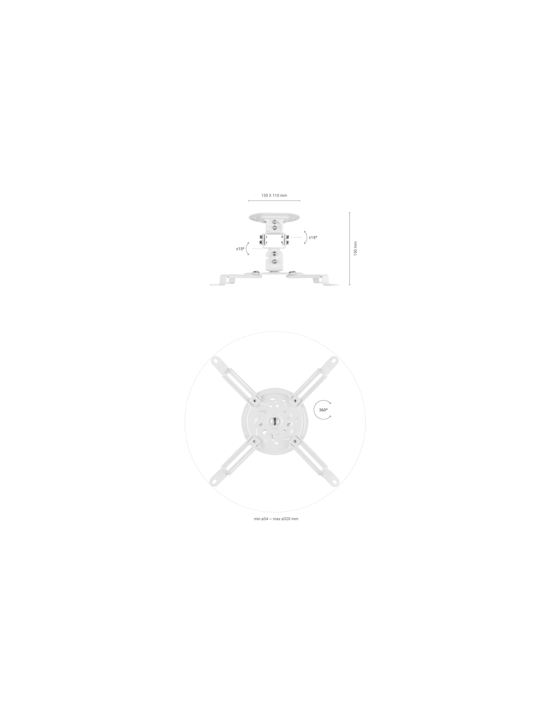 AISENS Soporte Universal Giratorio, Inclinable de Techo para Proyector 13.5Kg, Blanco. Tipo de montaje: Techo, Capacidad máxima de peso: 13,5 kg, Color del producto: Blanco. Ancho: 130 mm, Altura: 150 mm, Profundidad: 110 mm. Cantidad por paquete: 1 pieza(s), Cantidad por caja: 16 pieza(s)