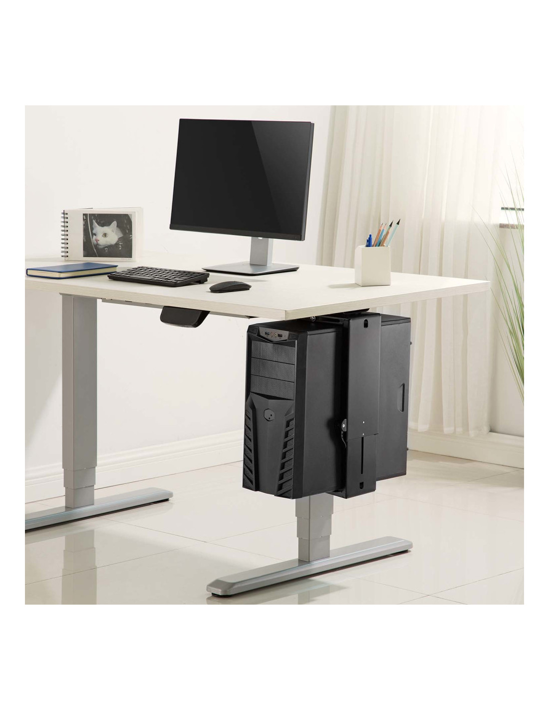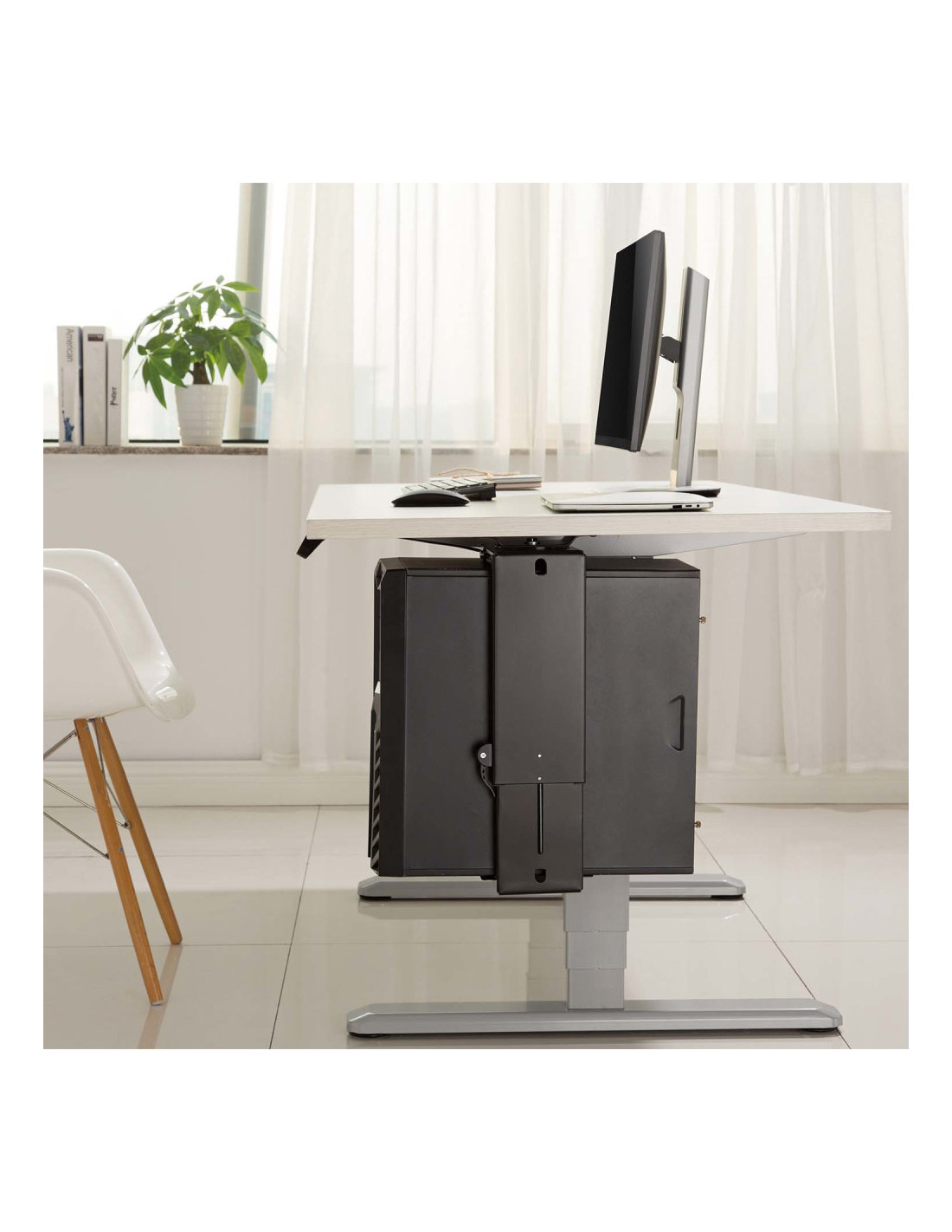 AISENS® – Soporte giratorio y altura personalizable para CPU por debajo de escritorio con mango de bloqueo fácil.