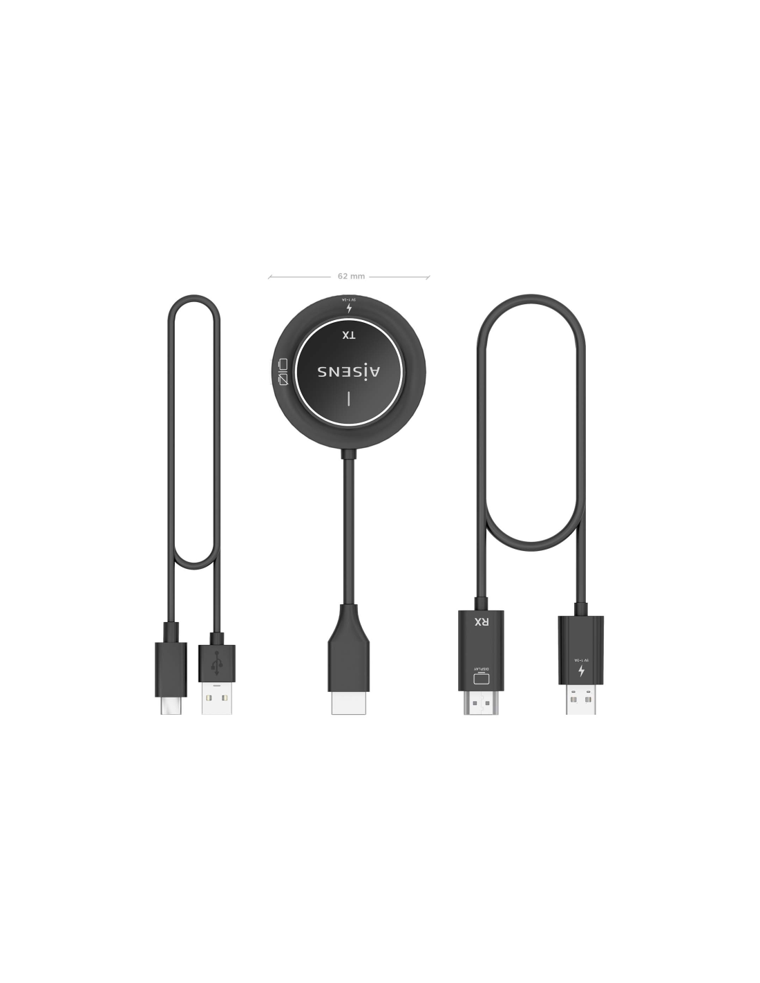 - Plug and Play: No requiere aplicaciones, software ni conexión de red. Solo se necesita conectar el transmisor a un dispositivo con salida HDMI, luego conectar el receptor a un HDTV/proyector/monitor y conectar la fuente de alimentación.