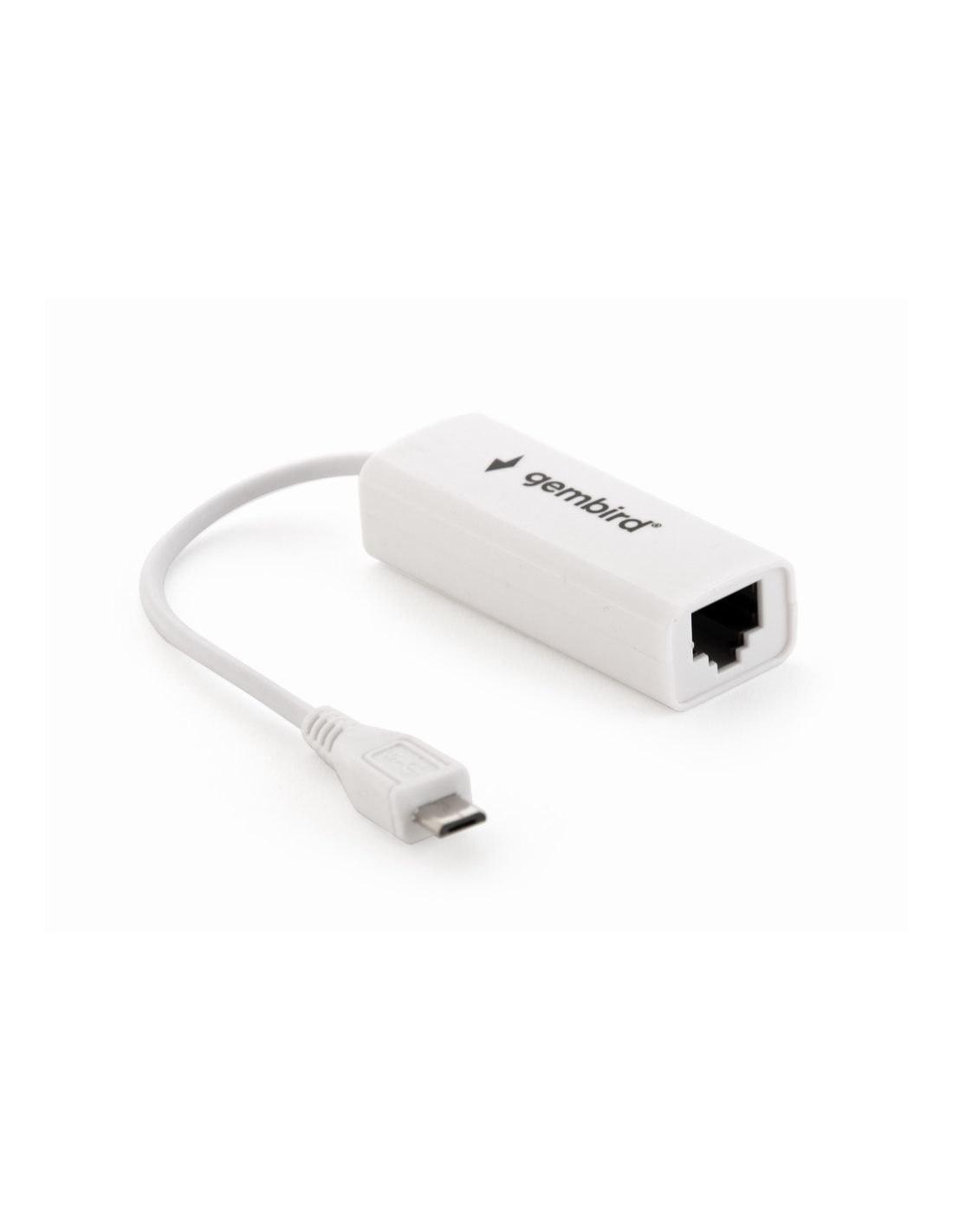 Gembird NIC-MU2-01. Tecnología de conectividad: Alámbrico, Interfaz de host: MicroUSB, Interfaz: Ethernet. Rango máximo de transferencia de datos: 100 Mbit/s. USB con suministro de corriente. Color del producto: Blanco