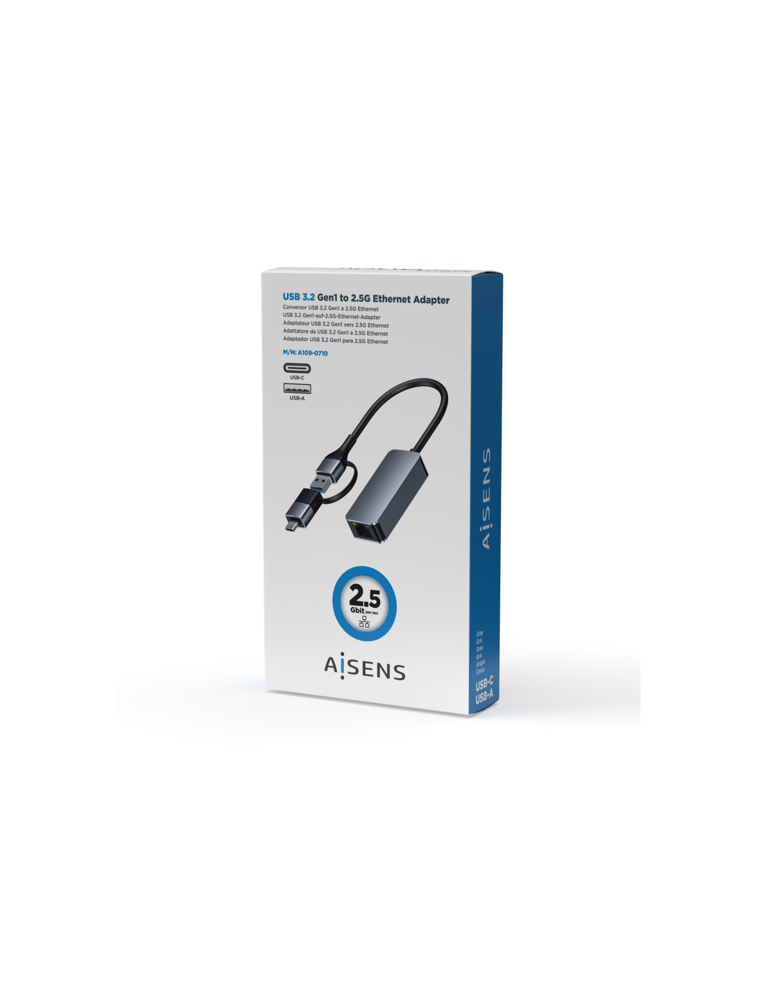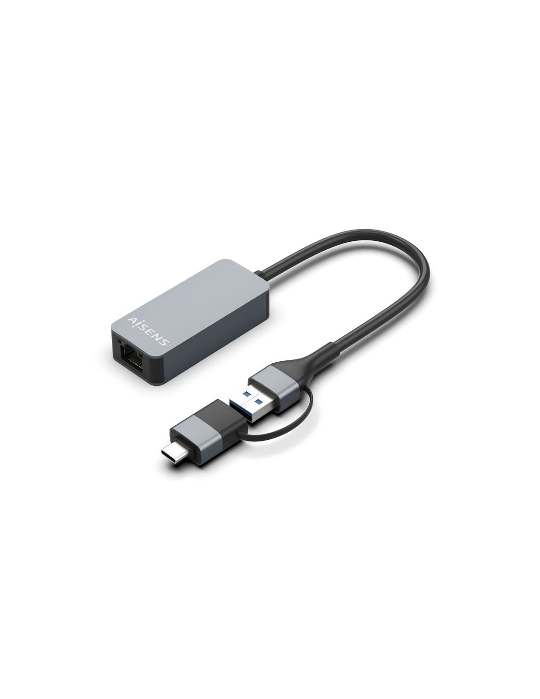 AISENS® – Conversor USB3.2 Gen1 USB-A+USB-C a Ethernet 2.5G 10/100/1000/2500 Mbps, Gris, 15cm