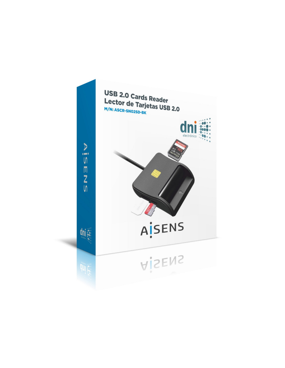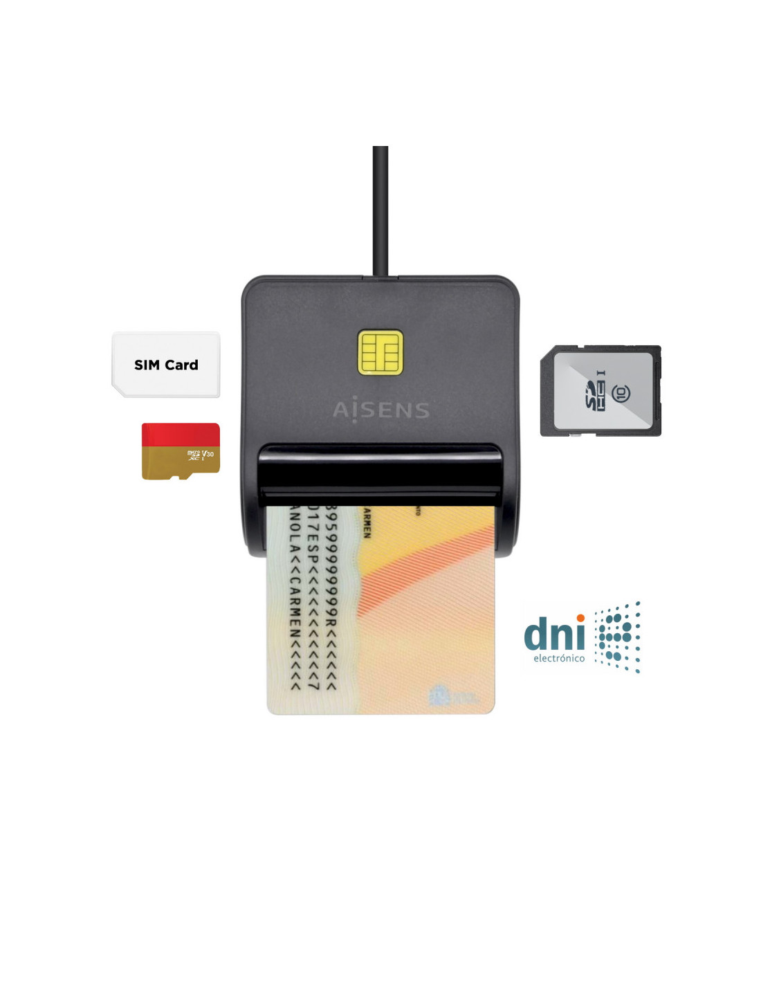 AISENS® – Lector de Tarjeta Inteligente DNI con Lector de Tarjetas SIM, SD, Micro SD, MMC, RS-MMC, MMC Micro, Negro
