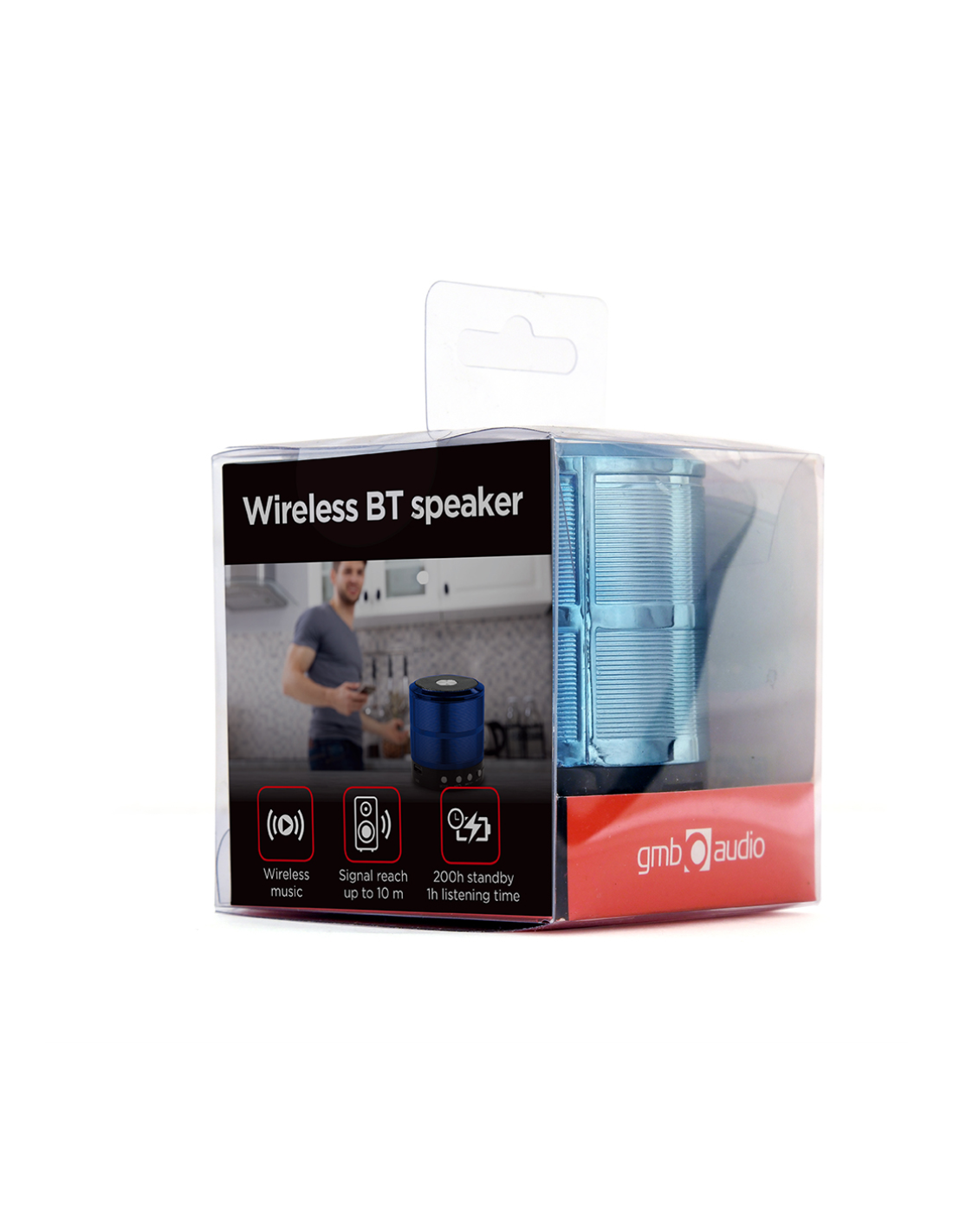 Gembird SPK-BT-08-B. Potencia estimada RMS: 3 W, Rango de frecuencia: 100 - 10000 Hz, Obstrucción: 4 O. Tecnología de conectividad: Inalámbrico y alámbrico, Versión de Bluetooth: 2.1+EDR, Alcance de frecuencia: 2,402 - 2,48 GHz. Tipo de producto: Altavoz monofónico portátil, Color del producto: Negro, Azul, Diseño de producto: Cilindro. Uso recomendado: Universal, Tarjetas de memoria compatibles: MicroSD (TransFlash). Tipo de batería: Batería integrada, Tecnología de batería: Polímero de litio, Capacidad de
