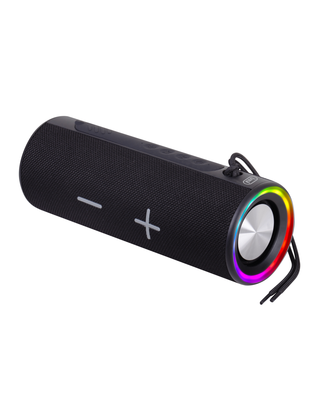 Trevi 0XR8A3500. Potencia estimada RMS: 20 W. Tecnología de conectividad: Inalámbrico, Conector USB: USB Tipo C. Tipo de producto: Altavoz portátil estéreo, Color del producto: Negro, Diseño de producto: Cilindro. Uso recomendado: Universal, Formatos de audio soportados: MP3, Tarjetas de memoria compatibles: MicroSD (TransFlash). Tipo de batería: Batería integrada, Alimentación: Batería, Tecnología de batería: Litio