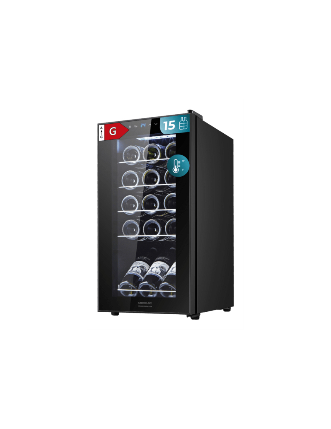 Cecotec 00120 enfriador de vino Nevera de vino Independiente Negro 15 botella(s)