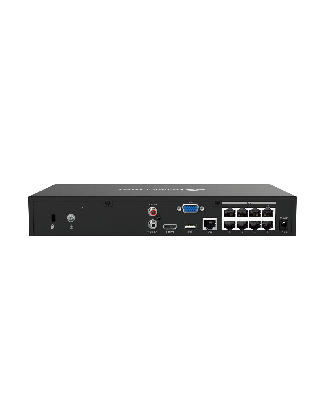 8 puertos PoE+ dedicados (budget de 53 W) para implementación simplificada de cámaras IP