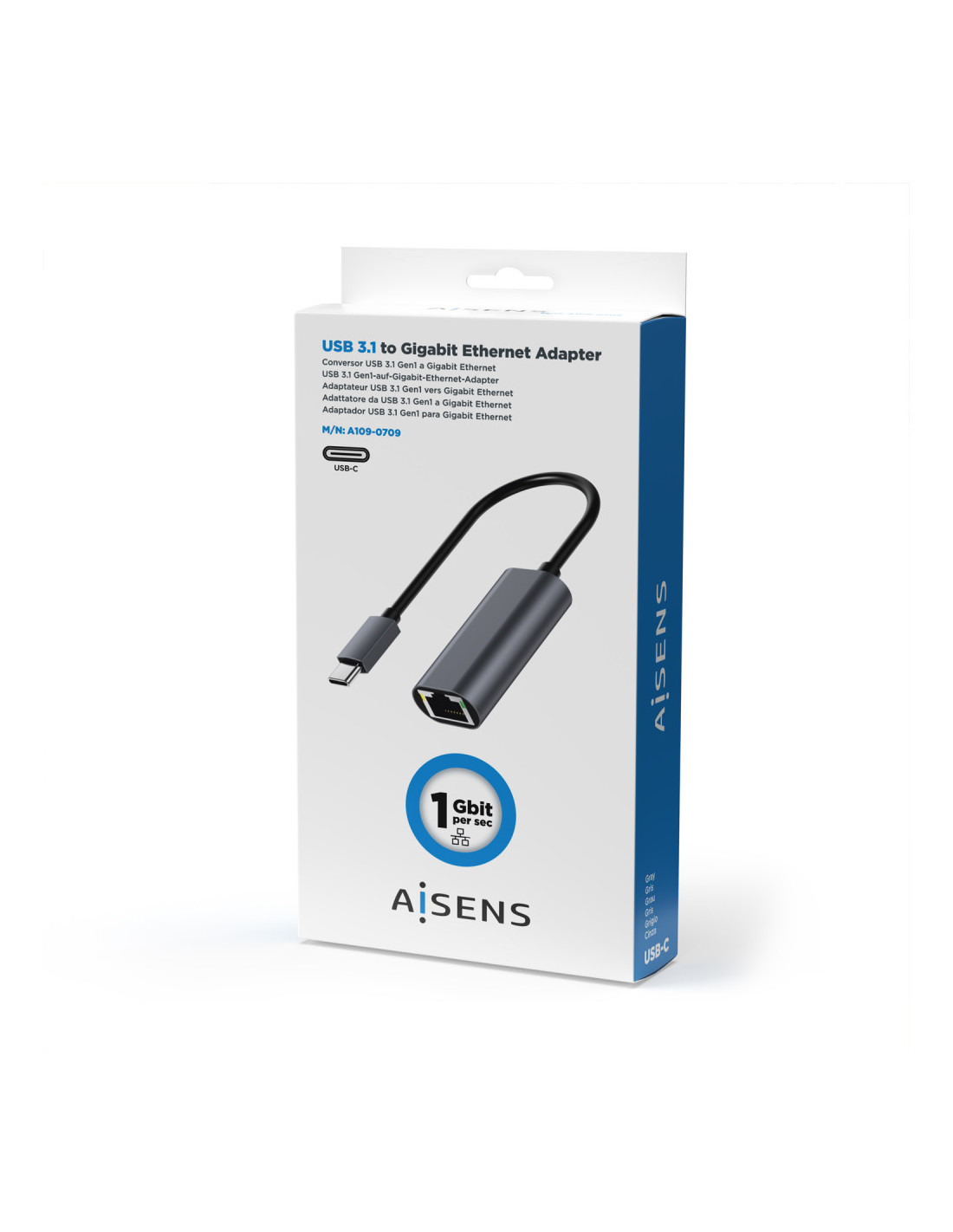 AISENS - Conversor USB3.1 Gen1 USB-C A Ethernet Gigabit 10/100/1000 Mbps, Gris, 15cm