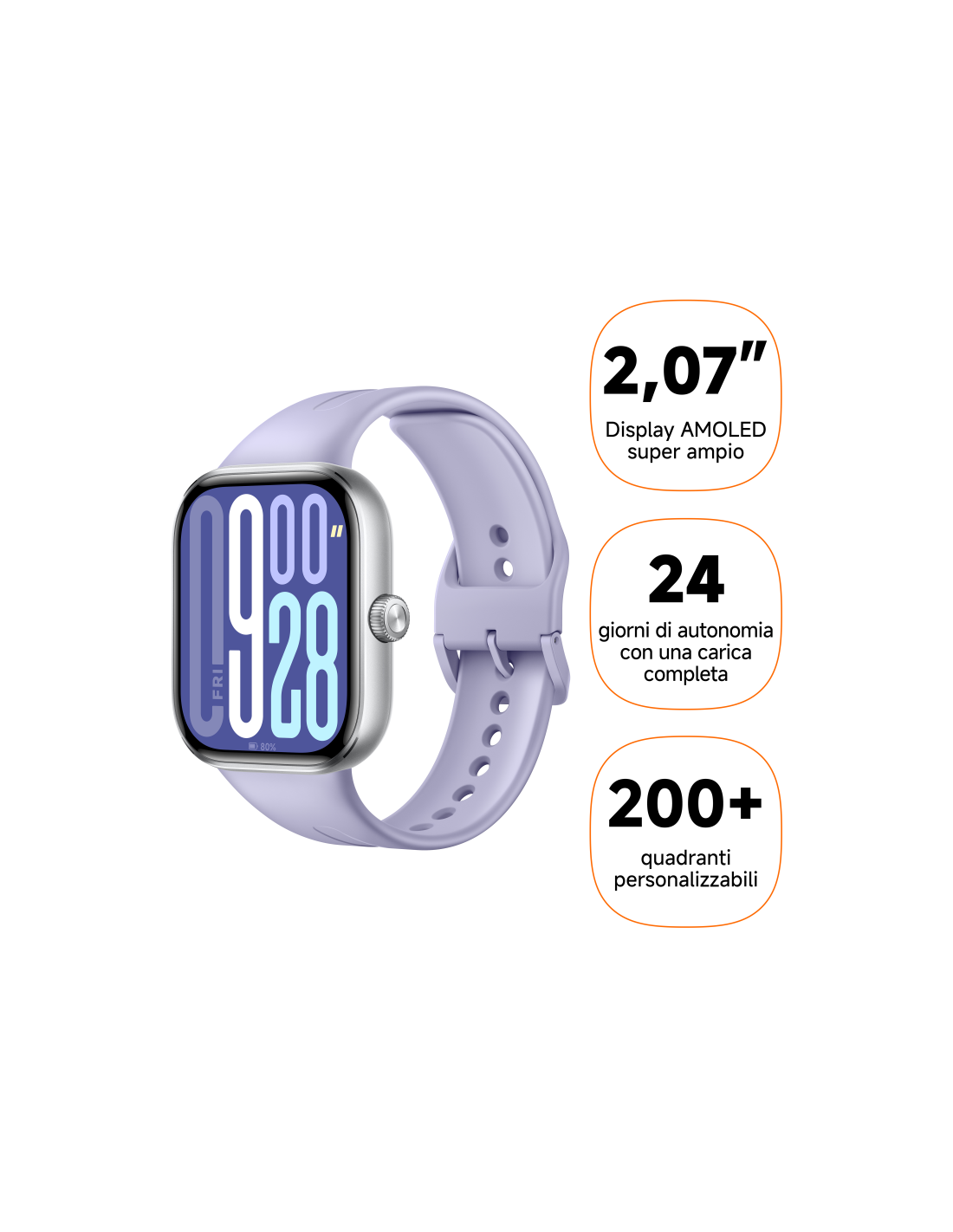 Xiaomi Watch 5. Diagonal de la pantalla: 5,26 cm (2.07"), Tecnología de visualización: AMOLED, Resolución de la pantalla: 432 x 514 Pixeles, Pantalla táctil. Material de la banda: Termoplástico de poliuretano (TPU), Color de banda: Púrpura
