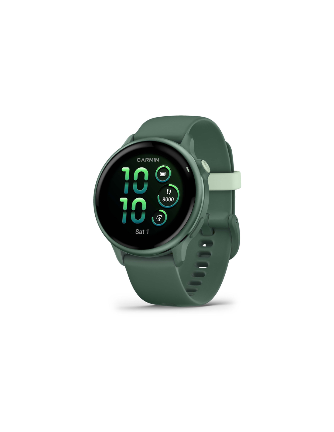 Garmin vívoactive 6. Diagonal de la pantalla: 3,05 cm (1.2"), Tecnología de visualización: AMOLED, Resolución de la pantalla: 390 x 390 Pixeles, Pantalla táctil. Memoria flash: 8 GB. Wifi. GPS (satélite). Peso: 36 g. Material de la banda: Silicona, Color de banda: Verde, Tamaño de banda: Talla única