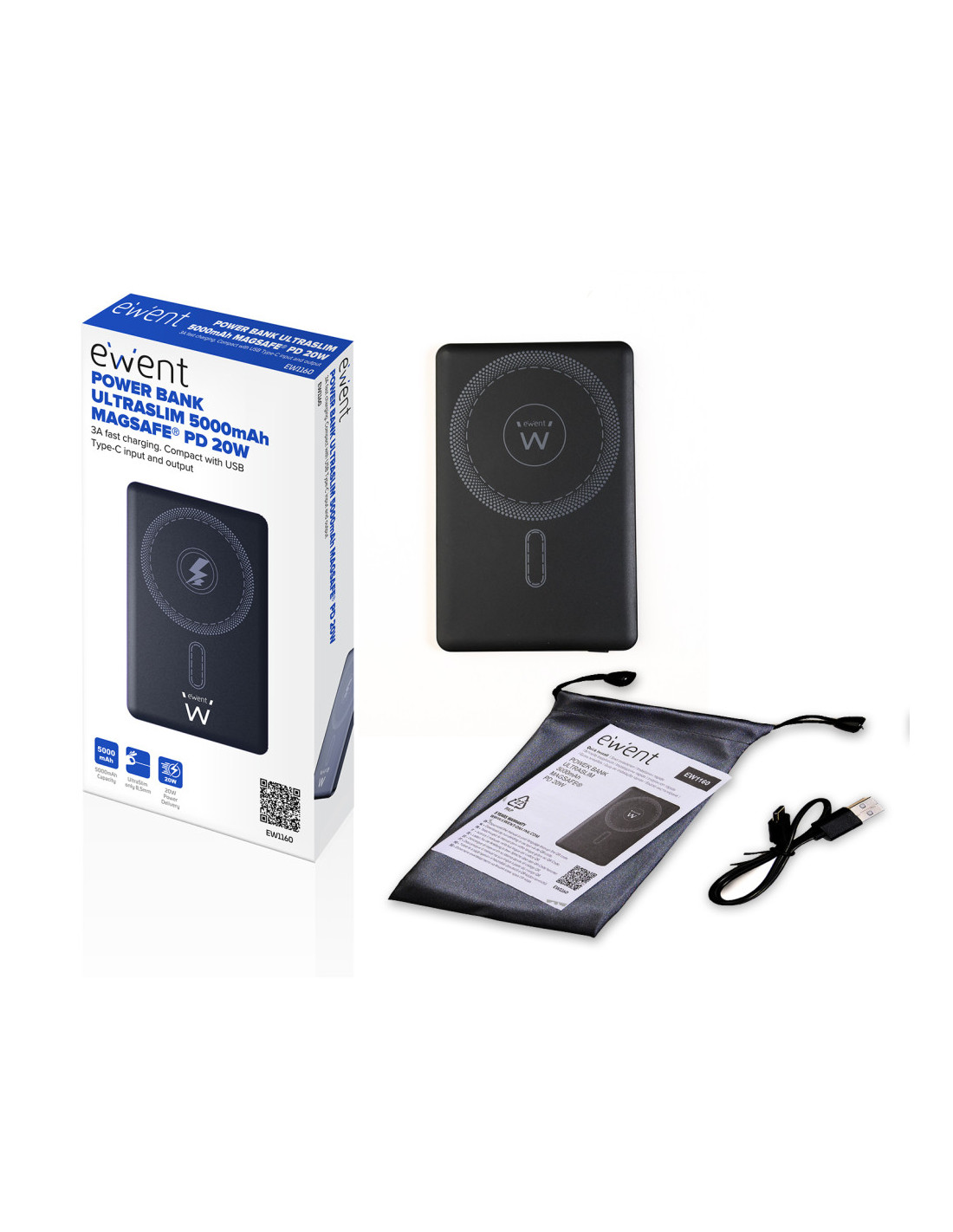 Incluye cable de carga USB-C, bolsa de viaje y guía de usuario. Ligero, potente y seguro, es la solución perfecta para mantener tus dispositivos siempre cargados.
