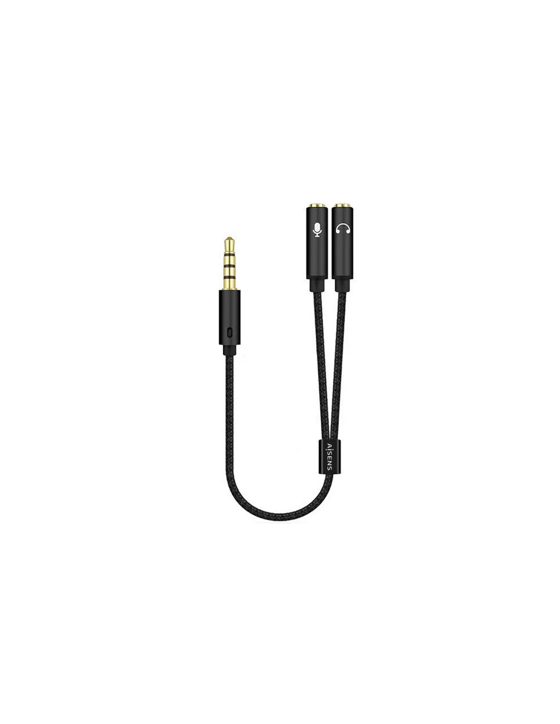 AISENS Cable Adaptador Audio Jack 3.5 4pines/M-2xjack 3.5 3pines/H, Negro, 25cm. Conector 1: 3,5mm, Género del conector 1: Macho, Conector 2: 2 x 3.5mm, Género del conector 2: Hembra, Material del cable: Cobre, Contactos del conector chapado: Aluminio, Longitud de cable: 0,25 m, Color del producto: Negro