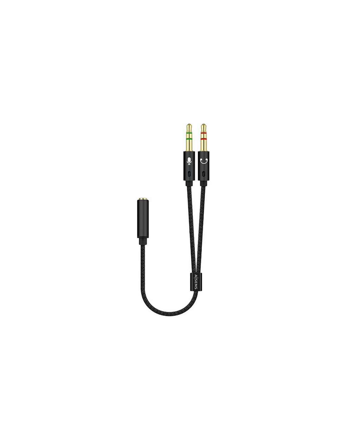 AISENS Cable Adaptador Audio Jack 3.5 4pines/H-2xjack 3.5 3pines/M, Negro, 25cm