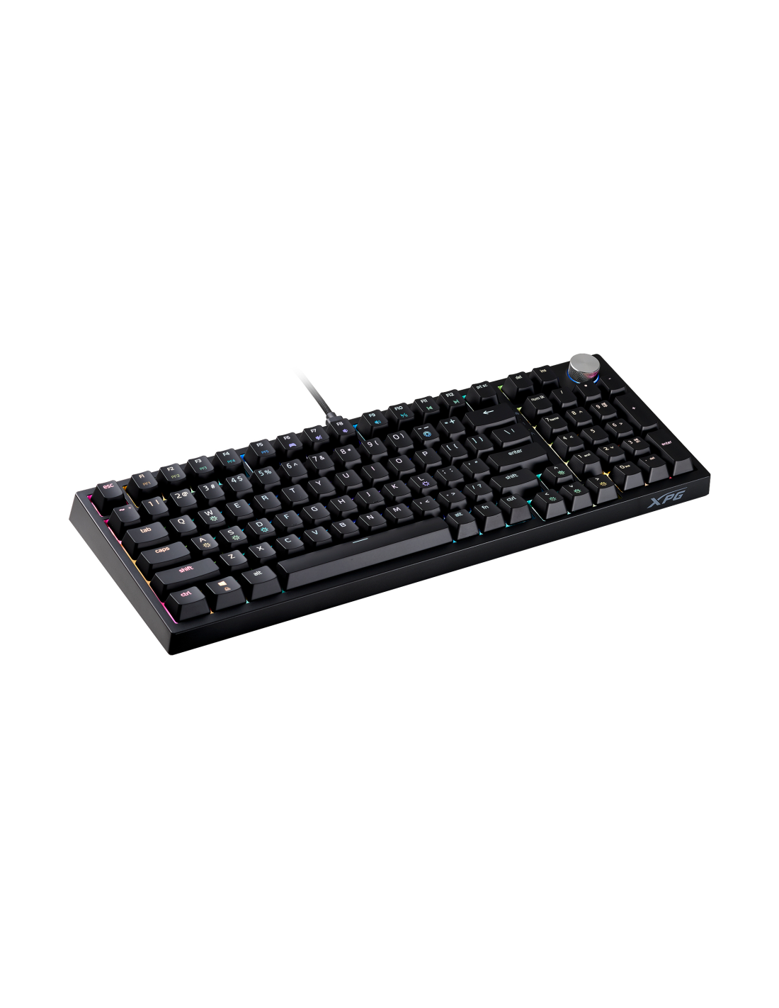 XPG SORCERER GAMING-KEYBOARD. Formato del teclado: 96%, Tecnología de conectividad: Alámbrico, Interfaz del dispositivo: USB, Interruptor del teclado: Interruptor mecánico. Tipo de retroiluminación: LED RGB. Uso recomendado: Juego. Color del producto: Negro