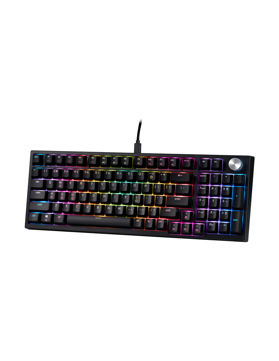 El teclado SORCERER con 96% de factor de forma logra el equilibrio perfecto entre compacidad y funcionalidad, ofreciendo a los usuarios una experiencia de escritura optimizada. Su elegante diseño permite optimizar el espacio de trabajo y satisfacer las necesidades de juego. Su tamaño compacto también lo hace muy portátil, ya que cabe perfectamente en mochilas para la productividad sobre la marcha. No importa si es un jugador que busca una configuración de juego elegante o un profesional que busca un espacio de trabajo eficiente, este teclado ofrece la combinación perfecta de estilo y rendimiento.