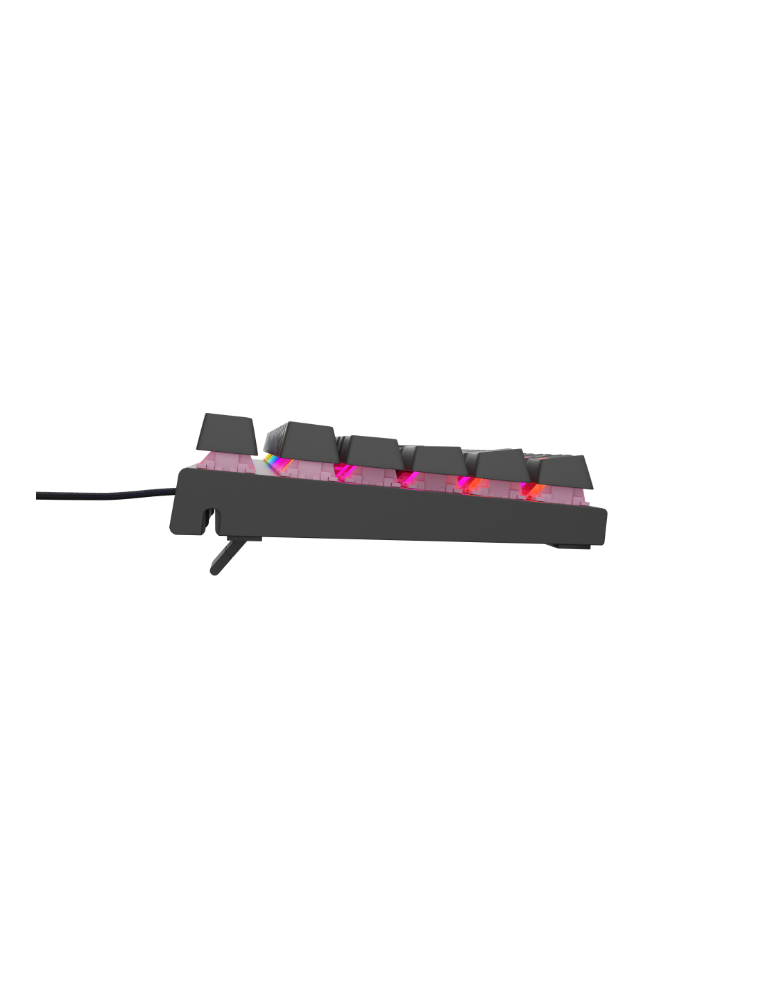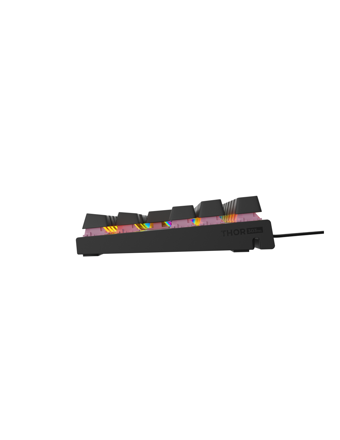 Un funcionamiento un 30% más silencioso no es la única ventaja de Outemu Peach Silent. Estos interruptores también presentan una respuesta rápida, un punto de activación del clic muy bajo, de 2 mm, y una presión necesaria de sólo 40 g. Como resultado, su ordenador registrará la acción mucho más rápido que con los equivalentes de membrana. Con el Thor 303 TKL, siempre irá un paso por delante de su oponente.