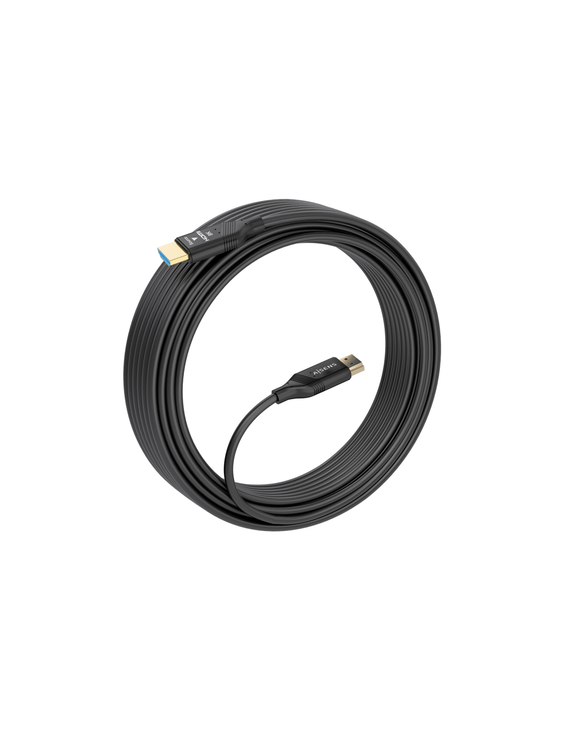 - Fabricado con una mezcla de alambre de fibra óptica y cobre, este cable activo es menos sensible a interferencias EMI, lo cual ofrece una señal clara y fiable de audio/vídeo, incluso en entornos como centros de datos, hospitales, etc.