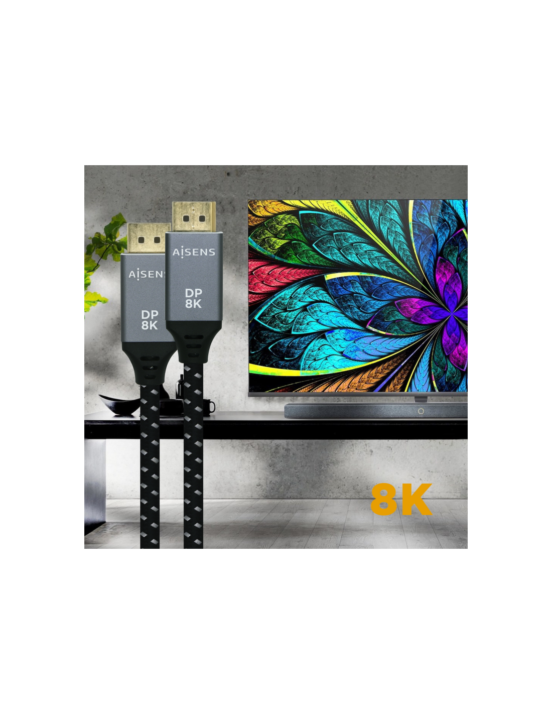Cable DISPLAYPORT V1.4 8K con conector DP macho (20 Pines) en ambos extremos.
