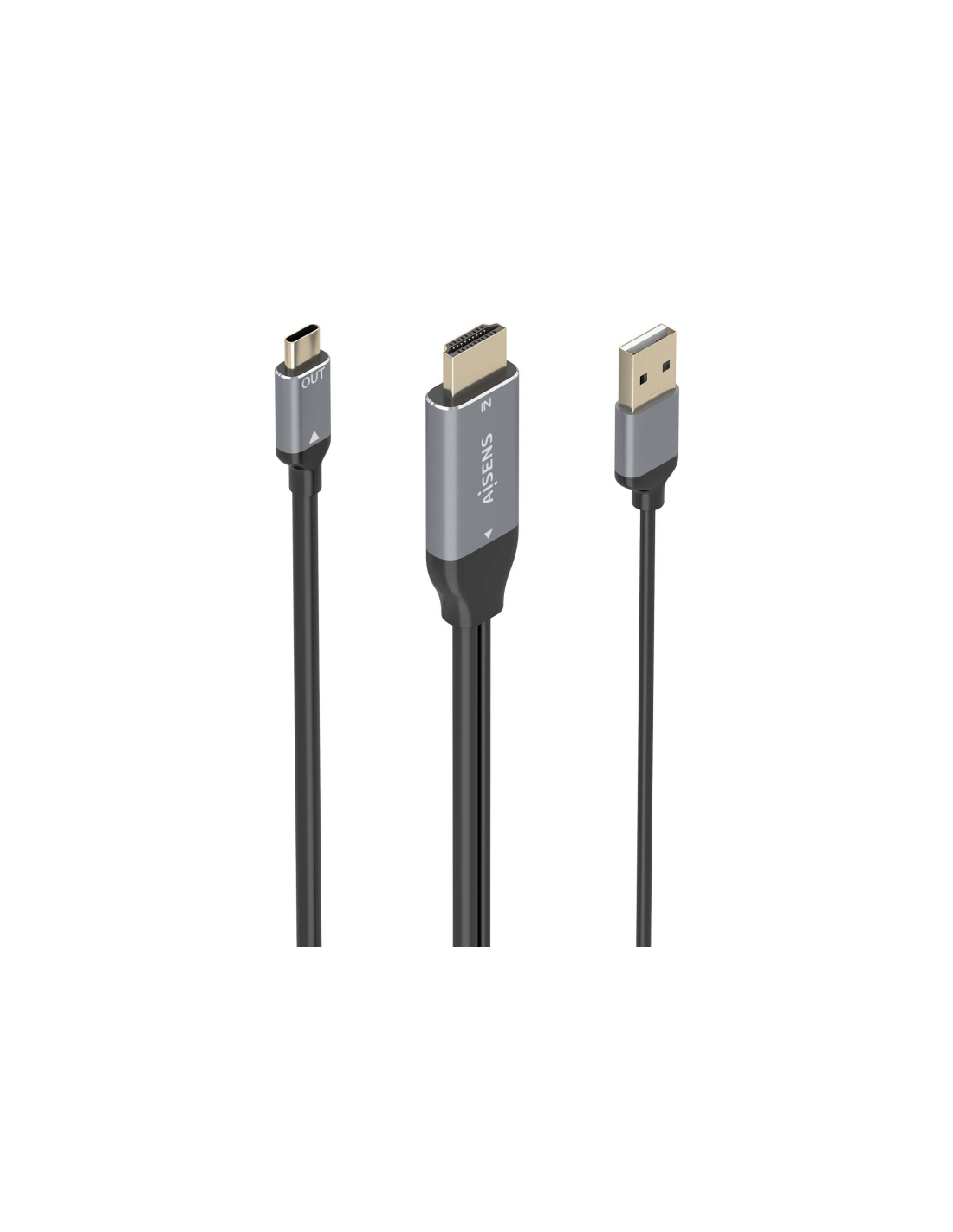 AISENS - Cable Conversor Aluminio HDMI V2.0 A USB-C 4K@60HZ, HDMI/M+USB-A/M-USB-C/M, Negro, 1.8m